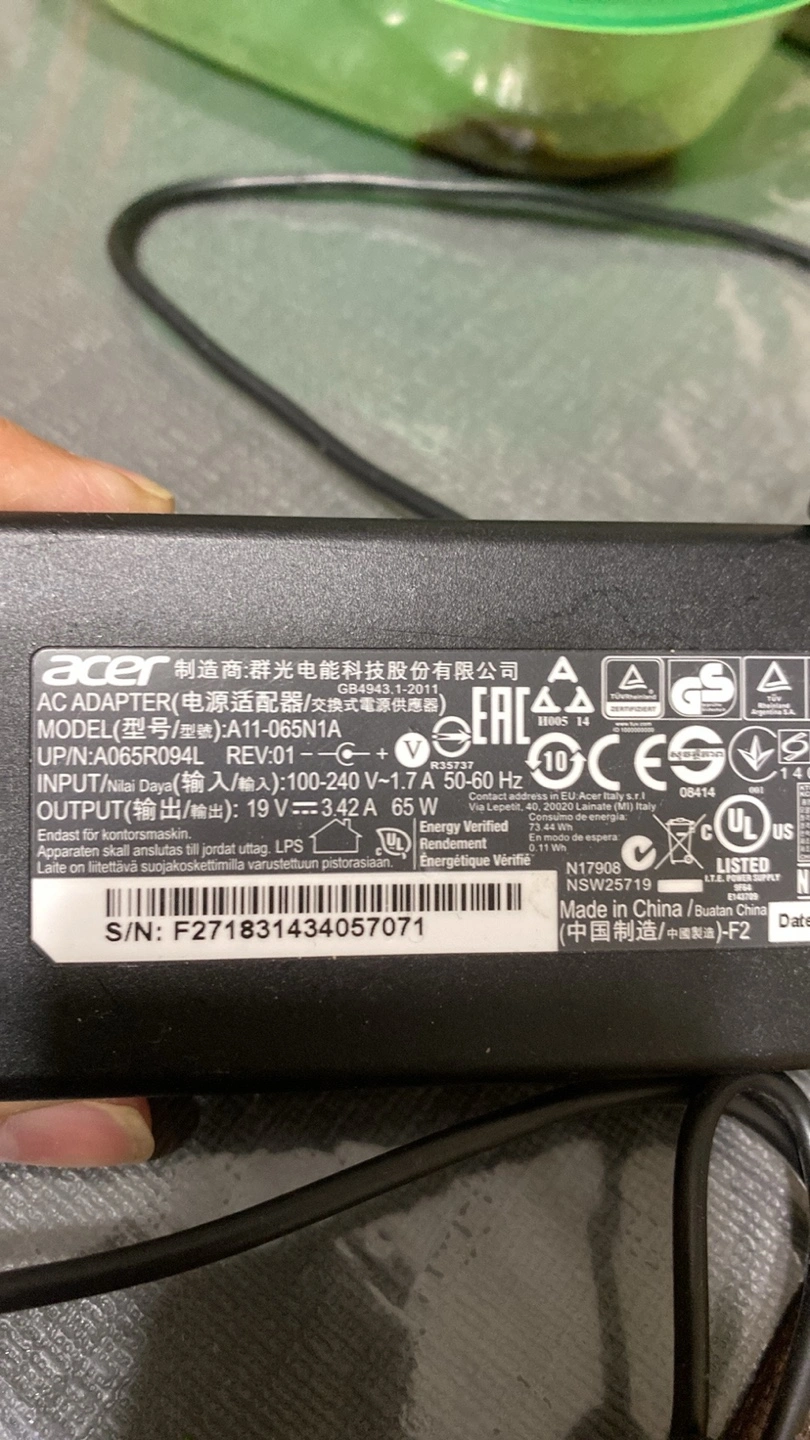 Two Acer laptop power adapters. 65W output. Includes power cords. $25 each