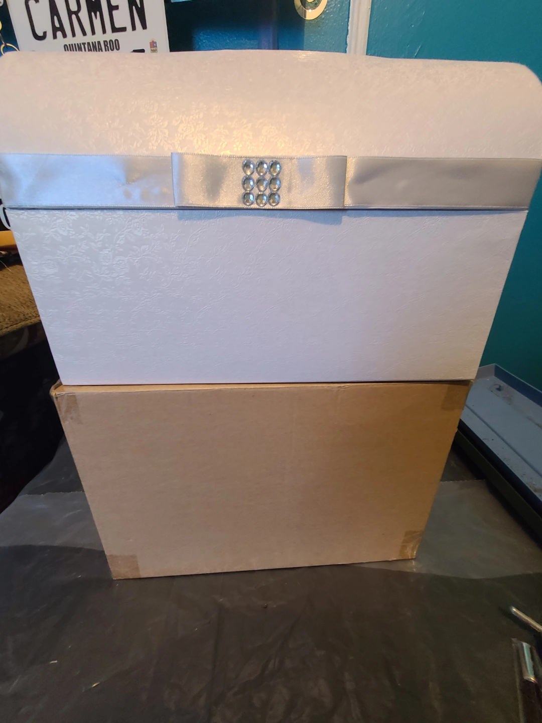 160Elegant white favor box. Features a satin ribbon and rhinestone embellishment. Perfect for weddings or special events. Empty box, ready for your treats.