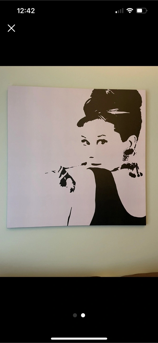 756Large format canvas print. Black and white image of Audrey Hepburn. Stylish home decor piece.