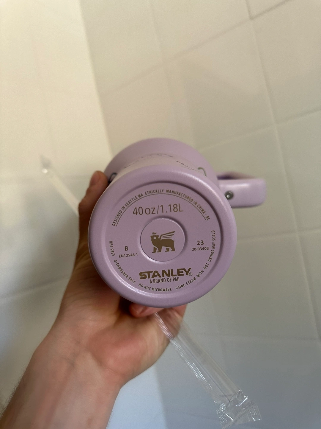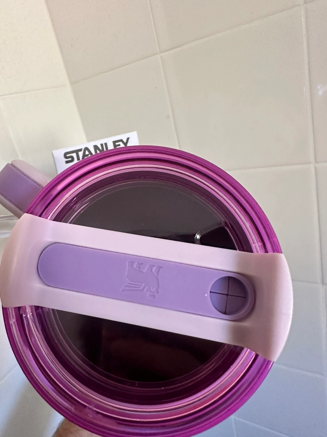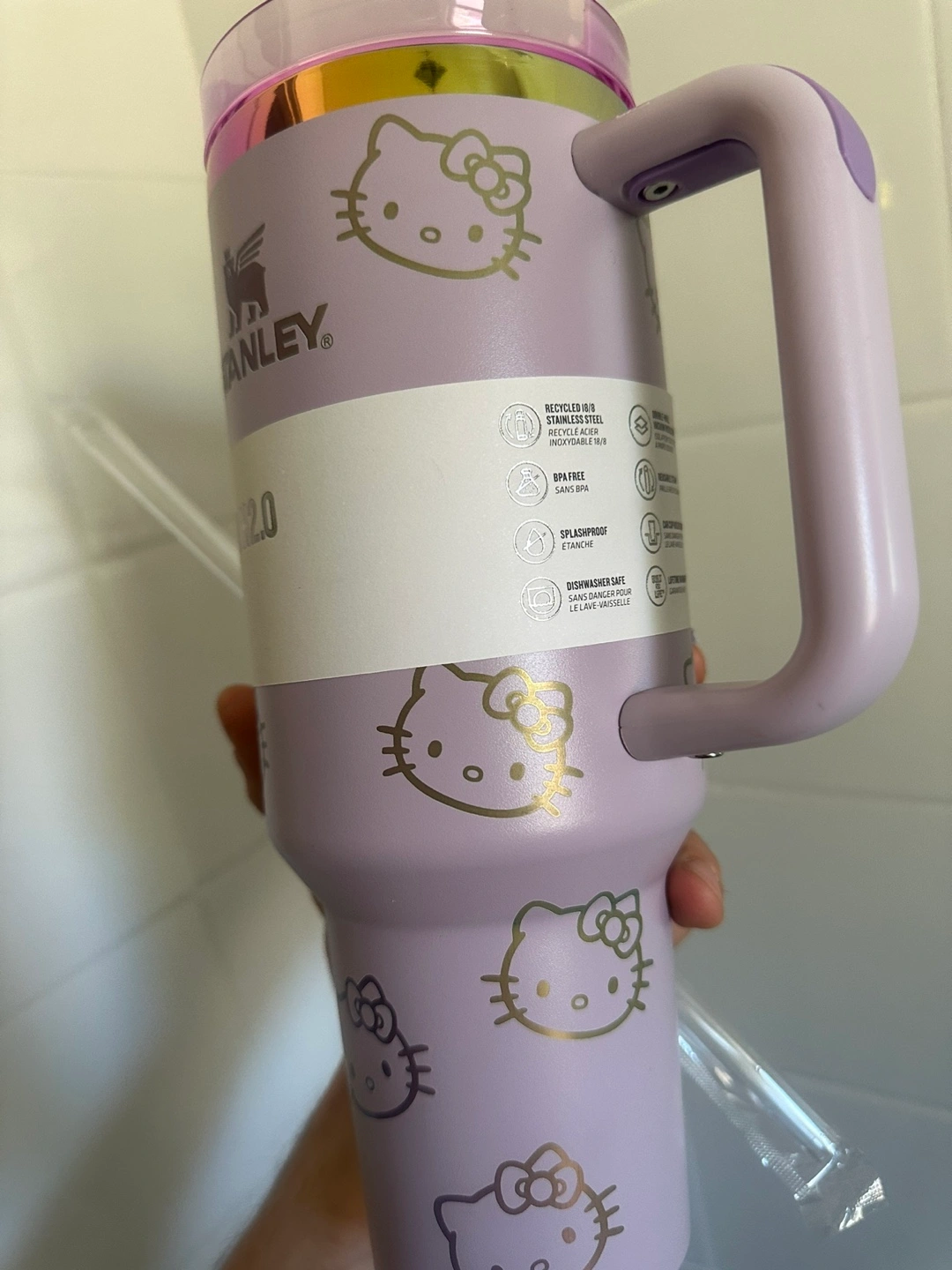 7640oz lilac purple Hello Kitty Stanley Quencher H2.0 Tumbler. Features a FlowState lid and handle. Includes straw.