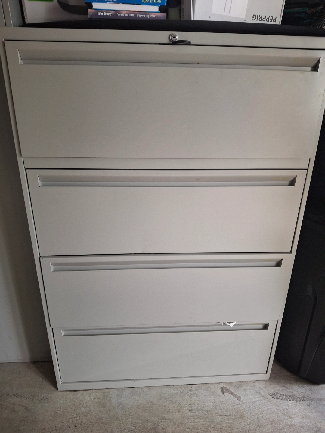 Buy & SellFour-Drawer Metal Filing CabinetFour-Drawer Metal Filing Cabinet$60Four-drawer metal filing cabinet. Light grey colour. Good for storage or organization. Some minor wear.WHERE TO MEETCheck LocationView MapSELLERRajQueensborough11912 reviews0 chats·0 favorites·20 viewsSEND CHAT TO SELLERHi Raj! I’m interested in your listing.Hi Raj! I’m interested in your listing.Get the Karrot app to chatSign In to chat