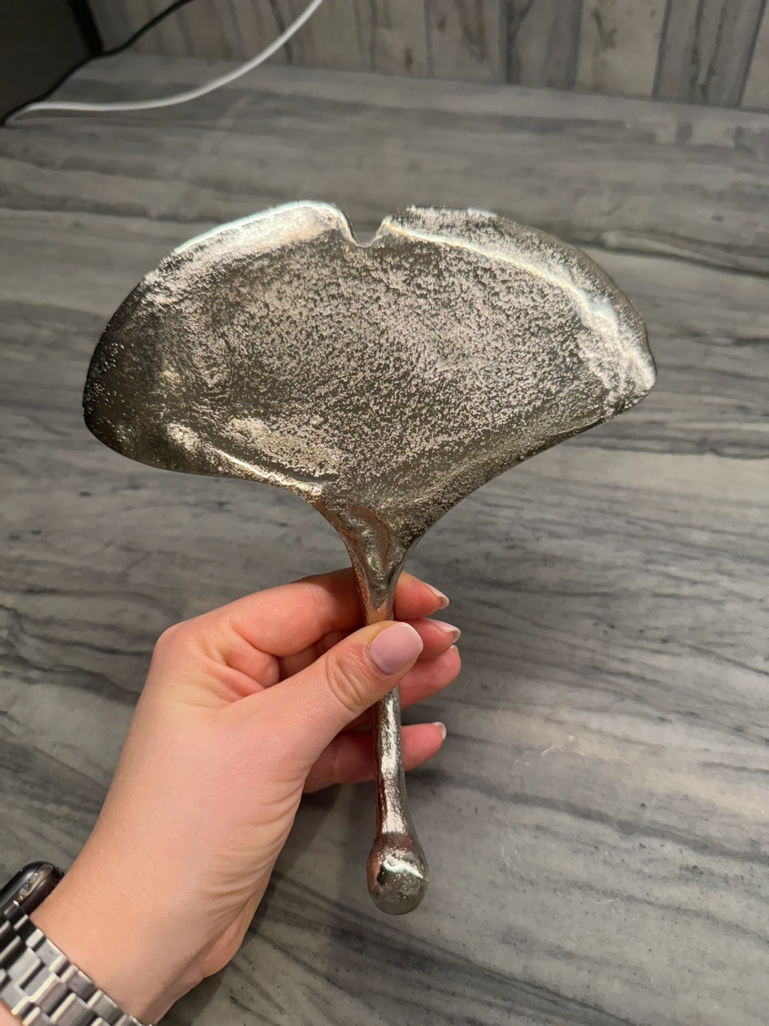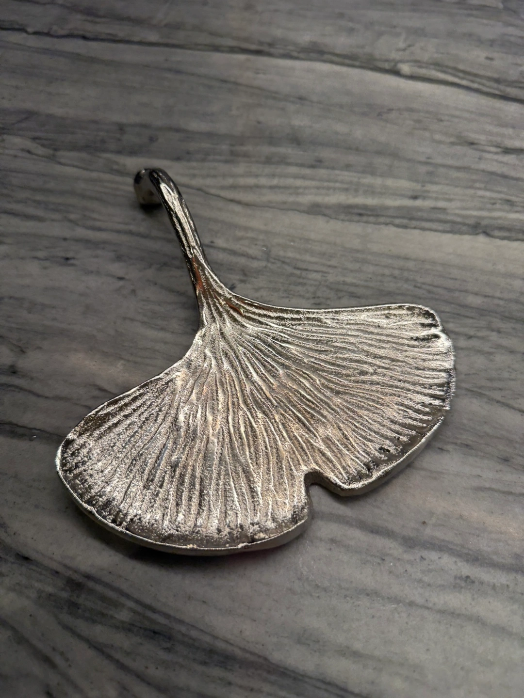 Add a touch of elegance to your kitchen or dining space with this beautiful ginkgo leaf-inspired utensil holder. Crafted from metal with a detailed, textured finish, this piece doubles as a functional tray or catchall for utensils, keys, or jewelry.
