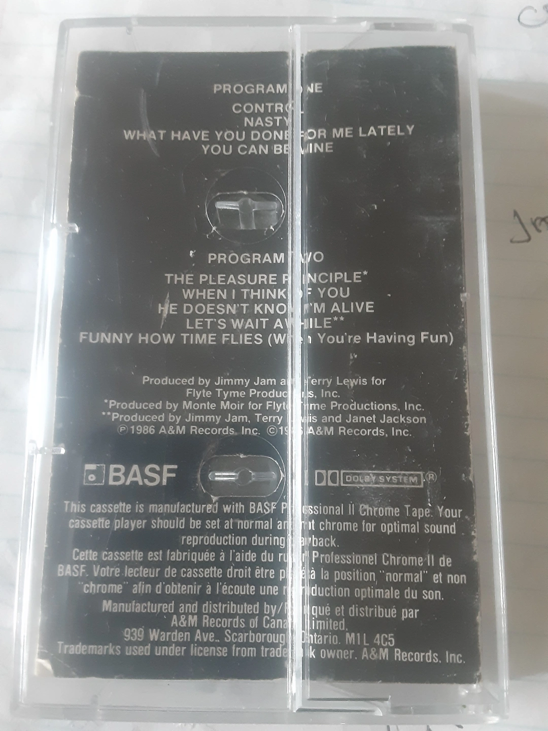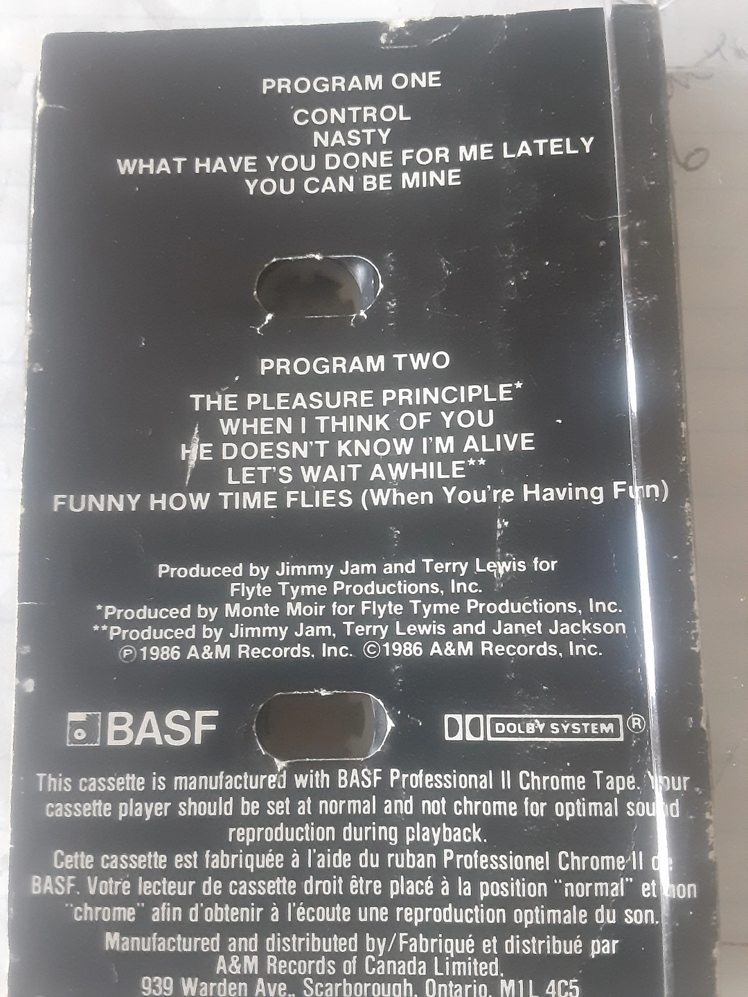 Vintage cassette tape. Chrome Dioxide. Includes songs Nasty, Let's Wait Awhile, and more. BASF tape. A&M Records.