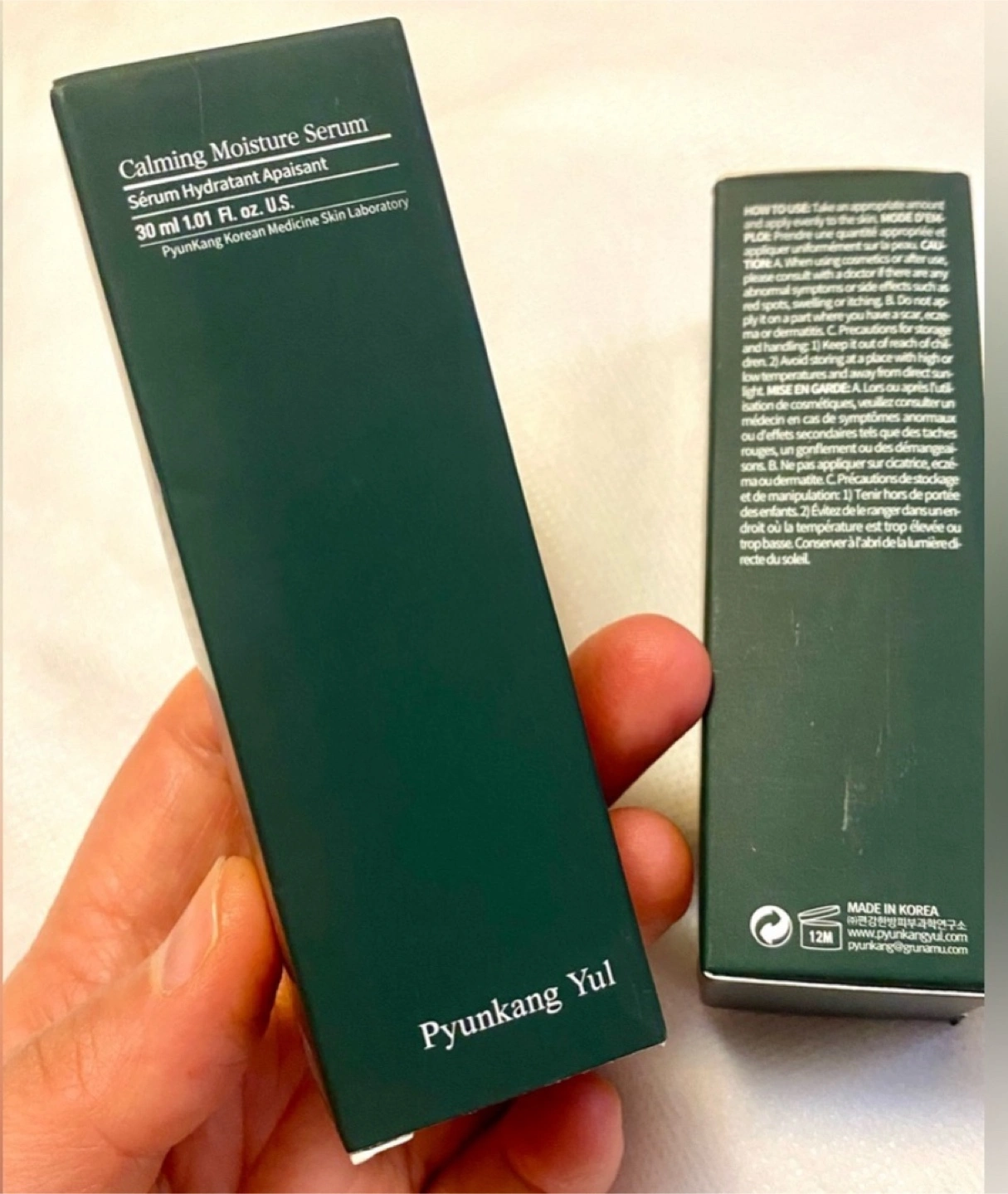 Two brand new, unopened bottles of Pyunkang Yul Calming Moisture Serum. Each bottle contains 30 ml. Made in Korea.