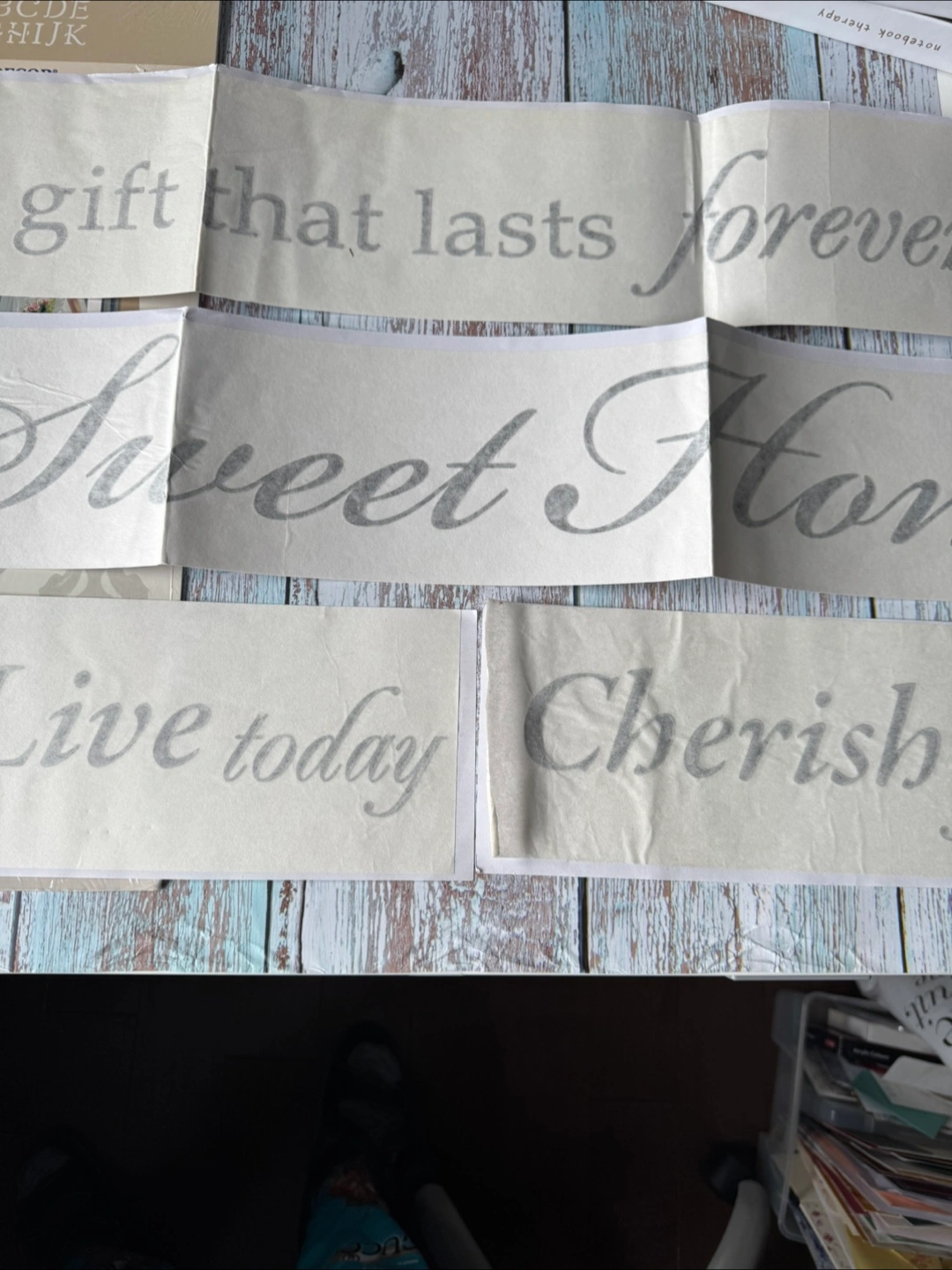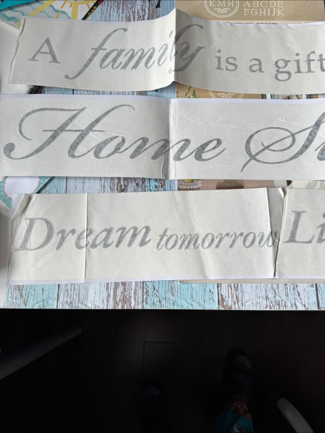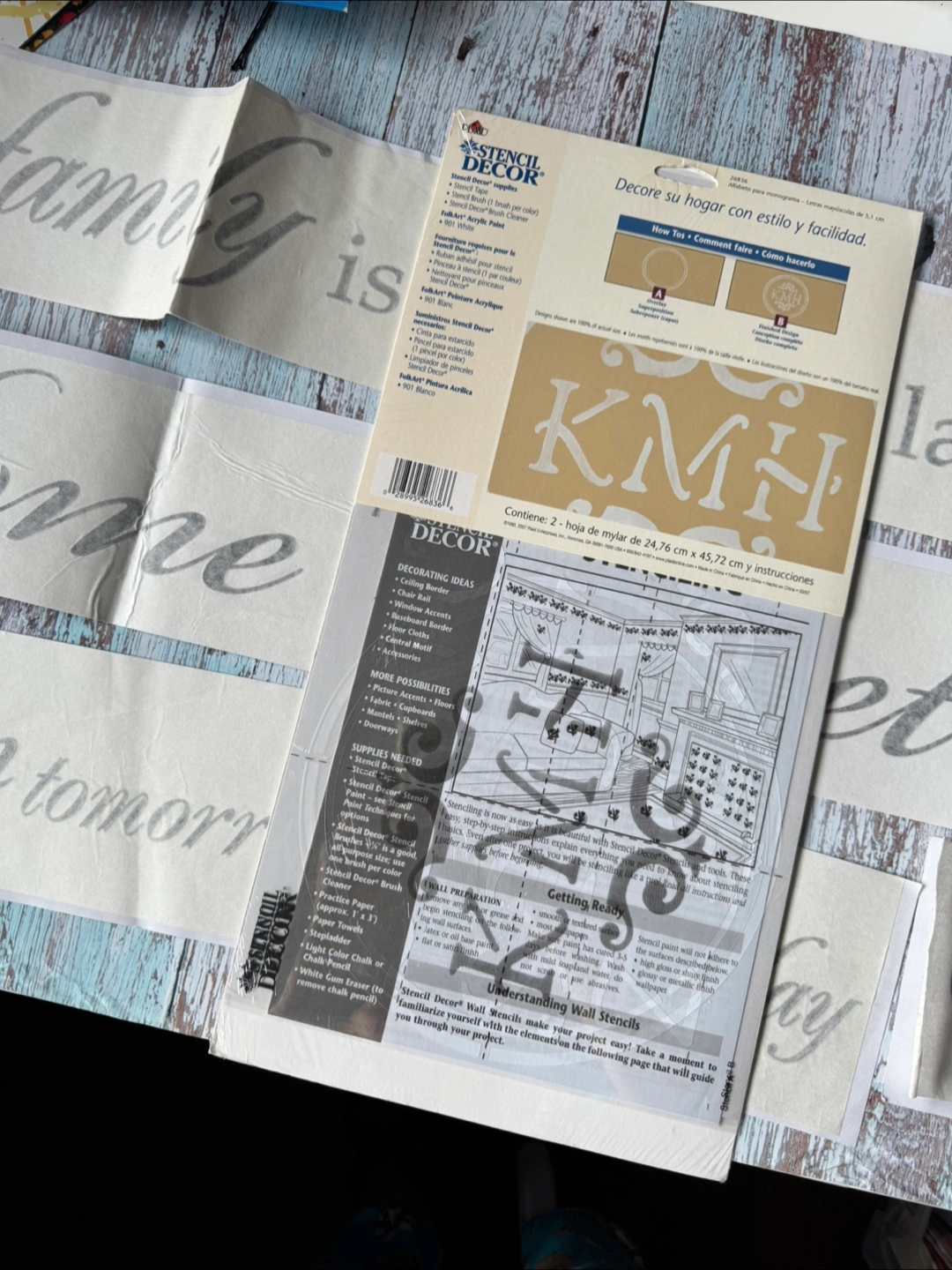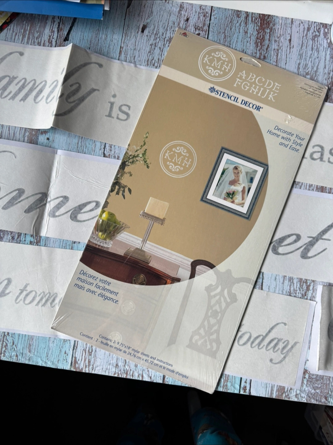 Create elegant home decor with stencil decor Includes alphabet and design examples. Also included in the bundle are wall decals “a family is a gift that lasts forever,” “home sweet home” and “dream tomorrow live today cherish yesterday” all for $5 only. Cash, pickup only at Markham.