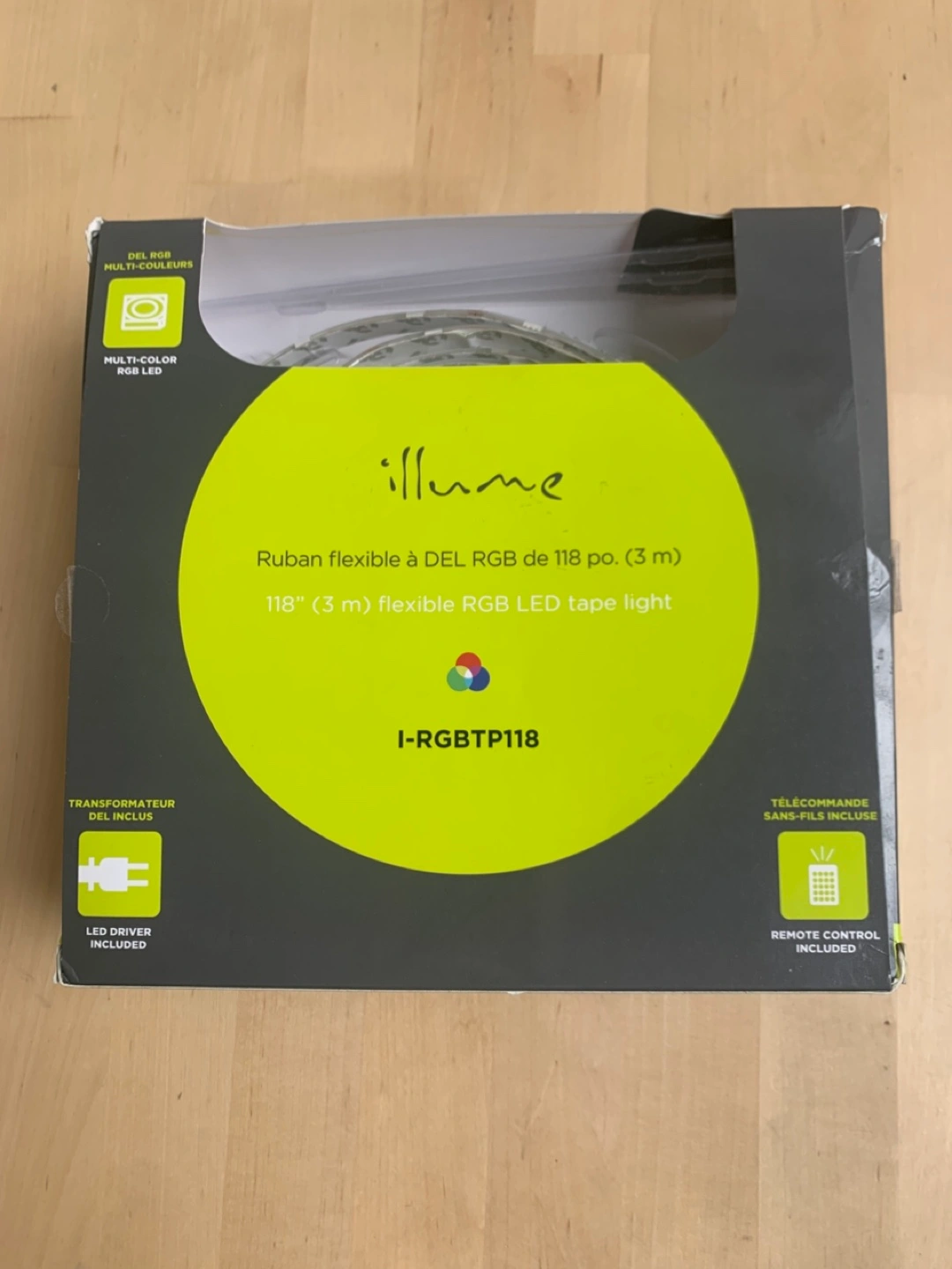 121New Illume I-RGBTP118 LED tape light. Includes power supply and remote. 118 inches (3 metres) of flexible RGB lighting.