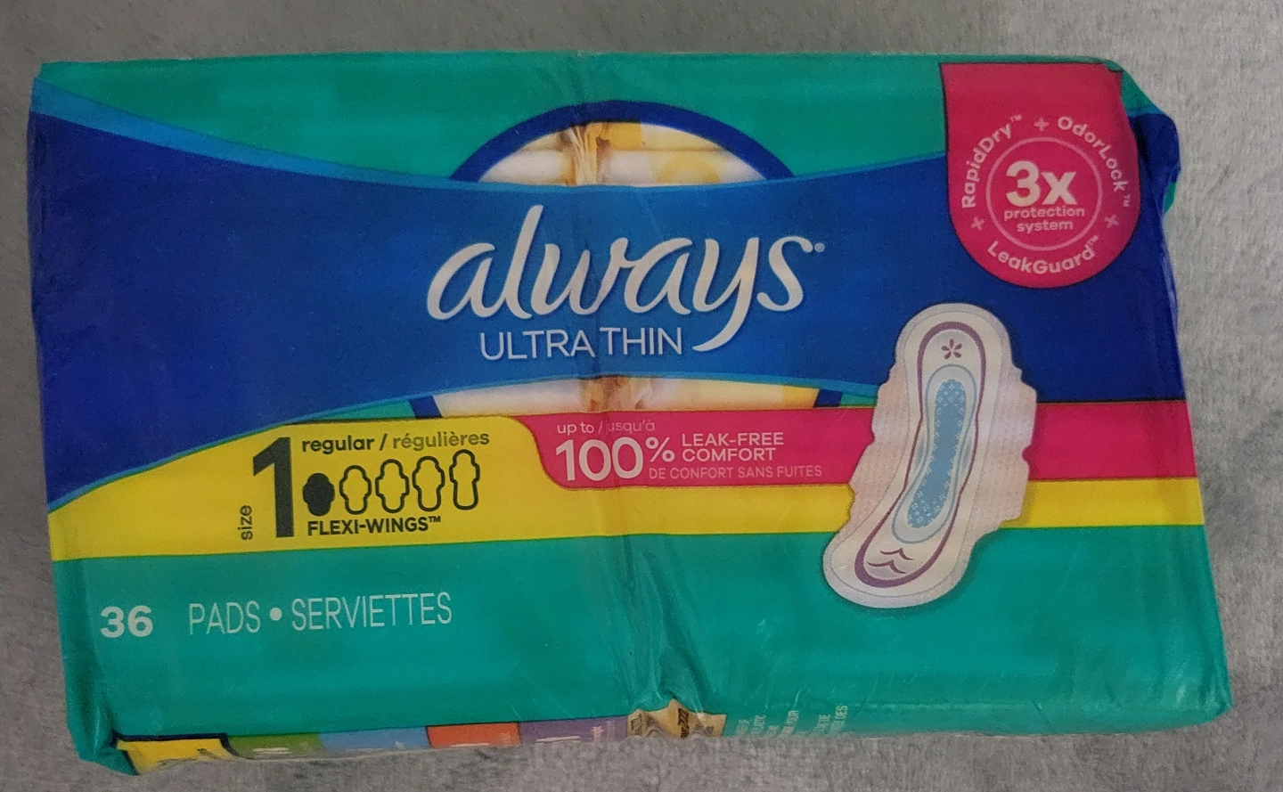 599Always Ultra Thin sanitary pads. Regular size, 36 pads per pack. Features Flexi-Wings for a secure fit. Leak-free comfort. RapidDry and OdorLock technology.