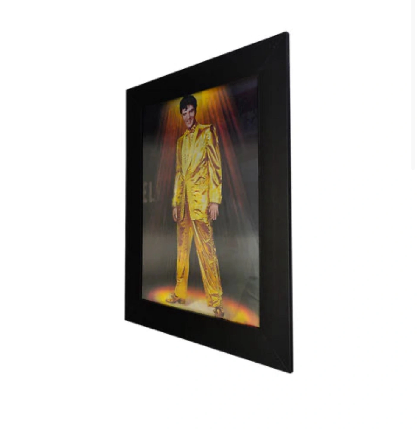 3D STYLE 3 Elvis Presley pictures in one black frame . Nice addition to any Elvis collection. Wood Frame color: Black