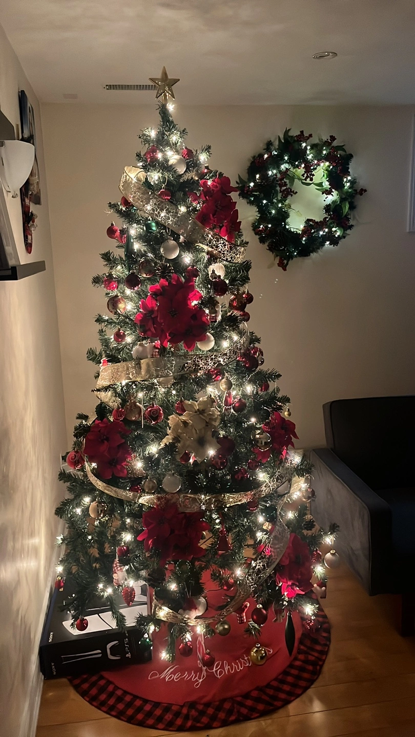 Pre lit Christmas tree in perfect working condition. Had to sell this since moving to another place where we cannot use this. Will include lot of the tree accessories as well for free.