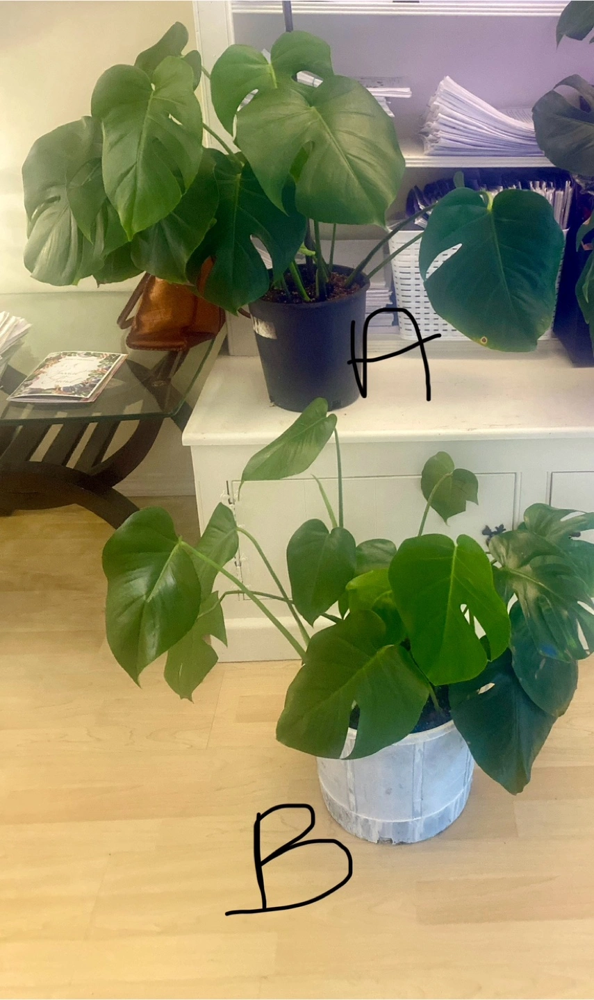 Three healthy Monstera Deliciosa plants for sale. Varying sizes and pot types. Great additions to your home or office.