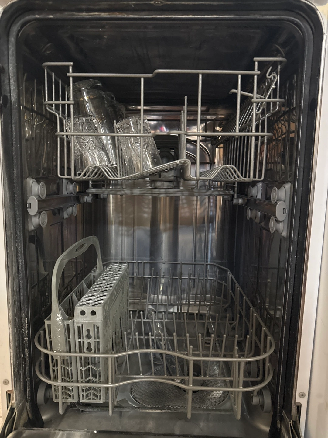 Used RCA RDW1809-WHITE portable built-in dishwasher. White finish. Features multiple wash cycles. Includes cutlery basket and upper rack. In perfect working condition. Will provide water hose to sink for free.