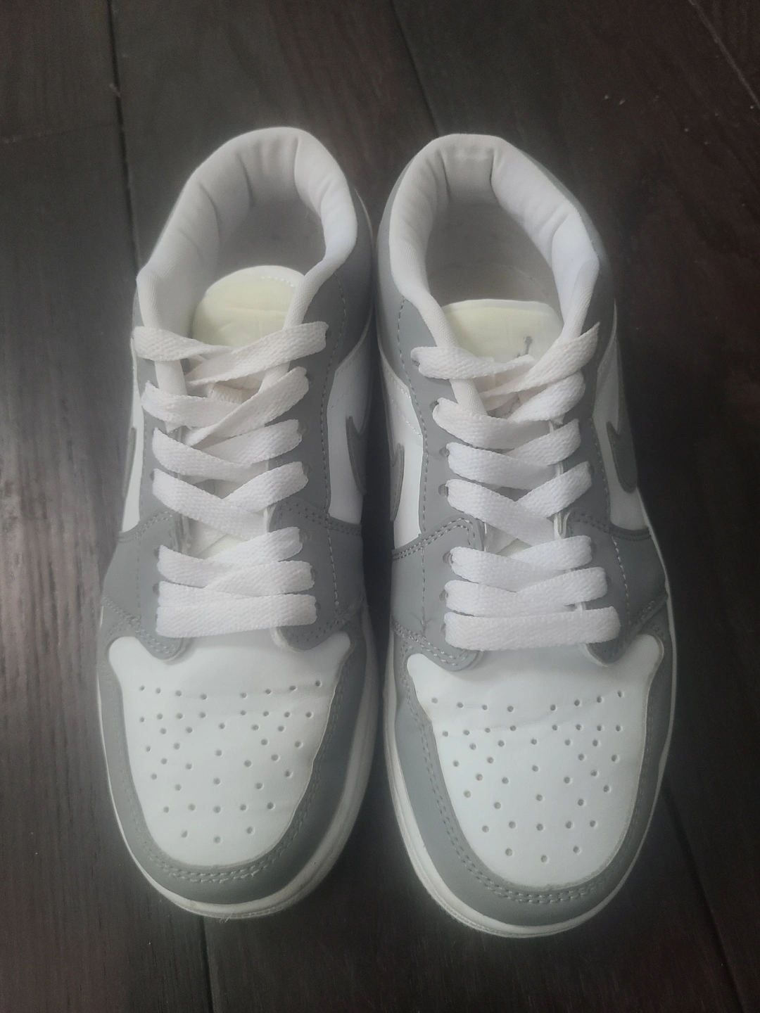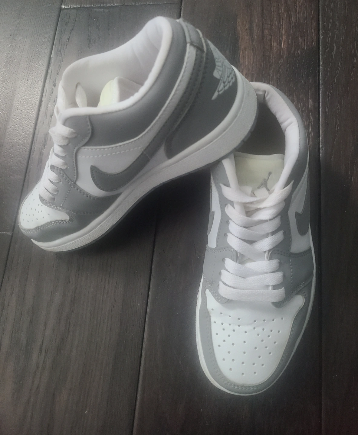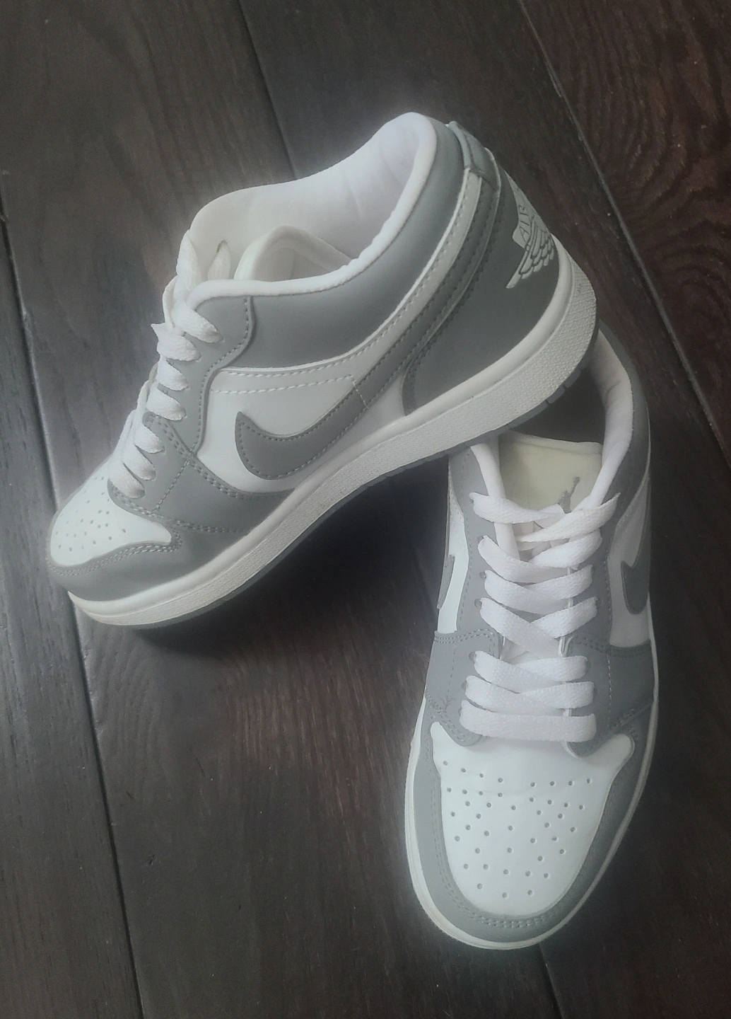 Air Jordan Low Top Sneakers - Grey and White in 4Y size