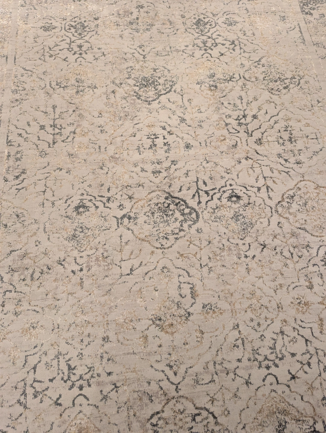 Beautiful area rug. Features an intricate beige and grey pattern. Excellent condition. From a smoke free, pet free home.