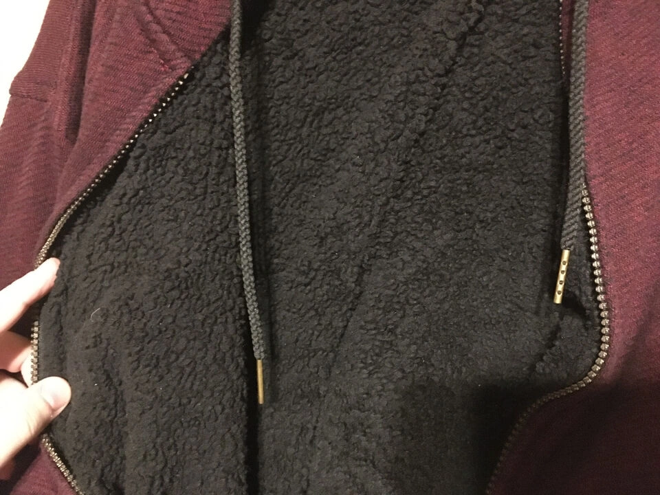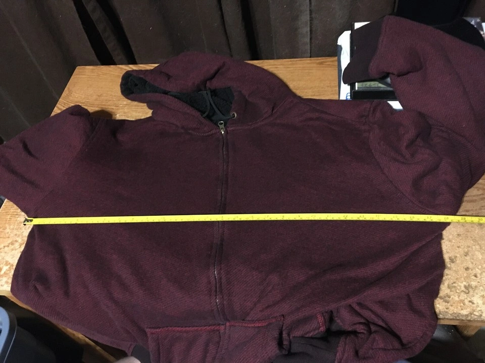 Burgundy zip-up hoodie. Fleece-lined interior. XXL. Two front pockets. Drawstrings. Good condition. washed. pick up at house