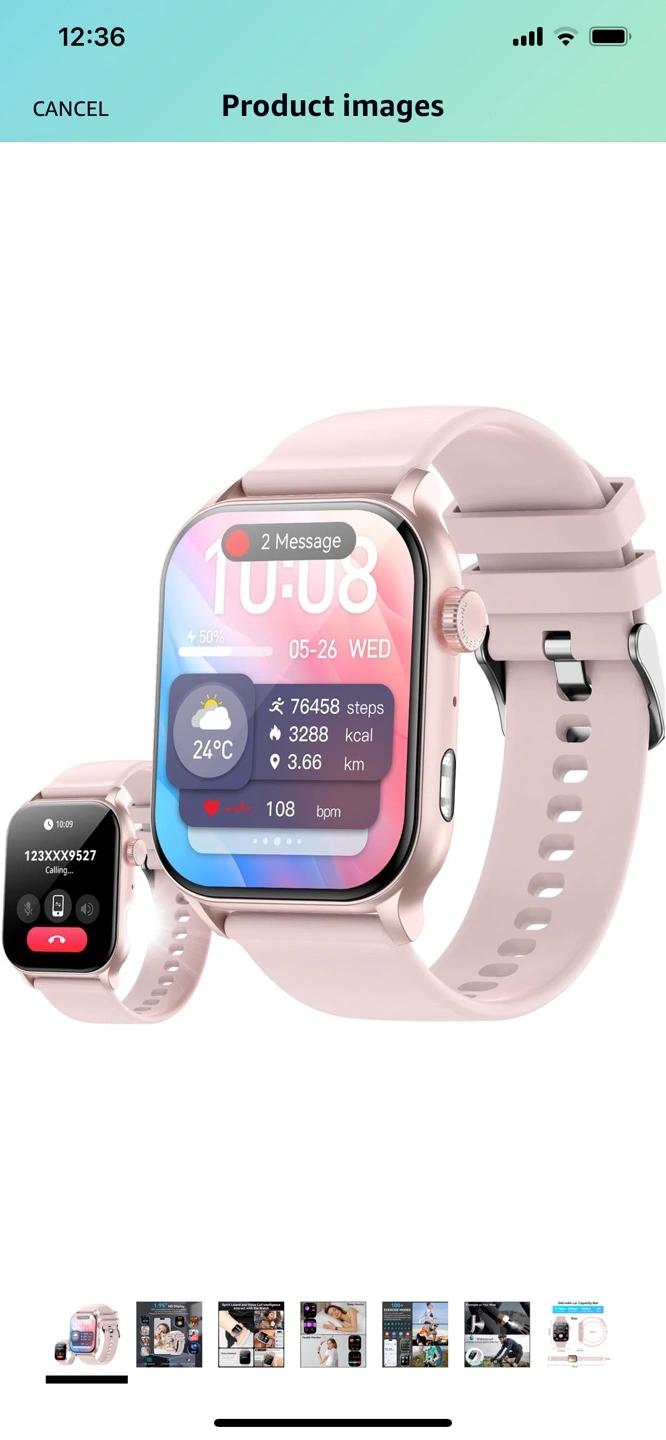 Rose gold smartwatch. Features a 1.95" AMOLED display, 410*502 resolution, and 99.5% ultra-wide colour gamut. Health and sleep monitoring. Bluetooth calling and voice assistant. Many customizable watch faces.