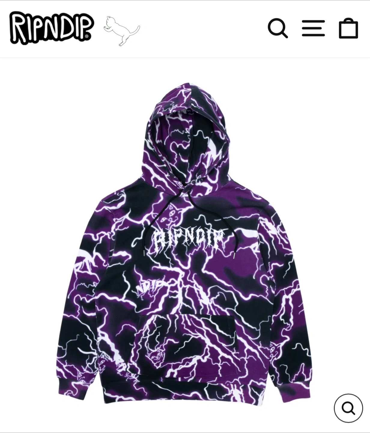 RipNDip purple and black lightning hoodie. Size XL. Features embroidered logo. Excellent condition.