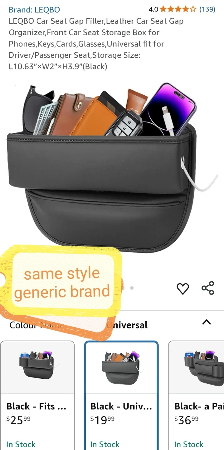 Keep your car organized with this new black leather car seat gap filler and organizer! It's perfect for storing phones, keys, cards, and glasses, ensuring everything stays in place while you drive. The universal fit makes it suitable for both the driver and passenger seats.