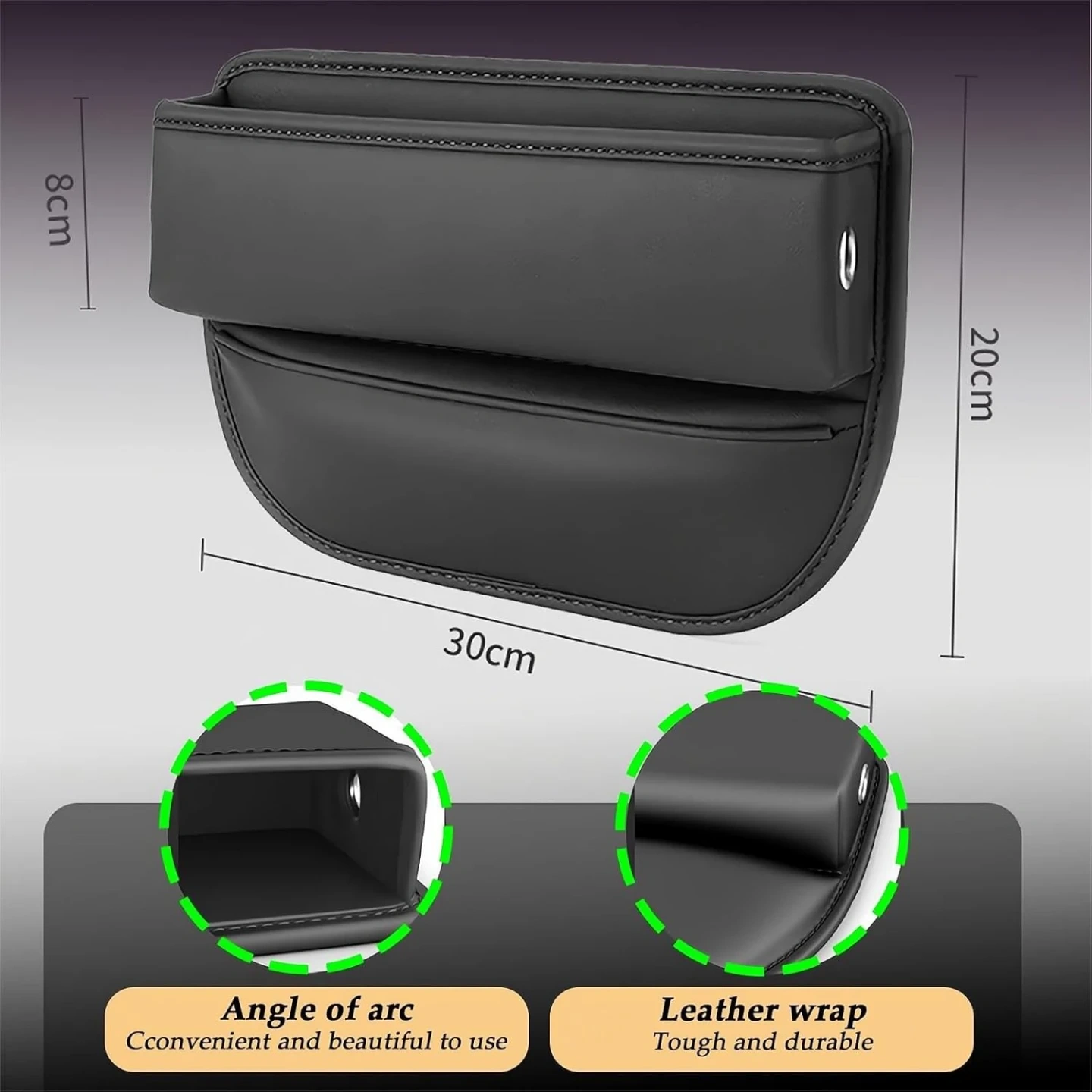Black Leather Car Seat Gap Filler Organizer, a set of 2