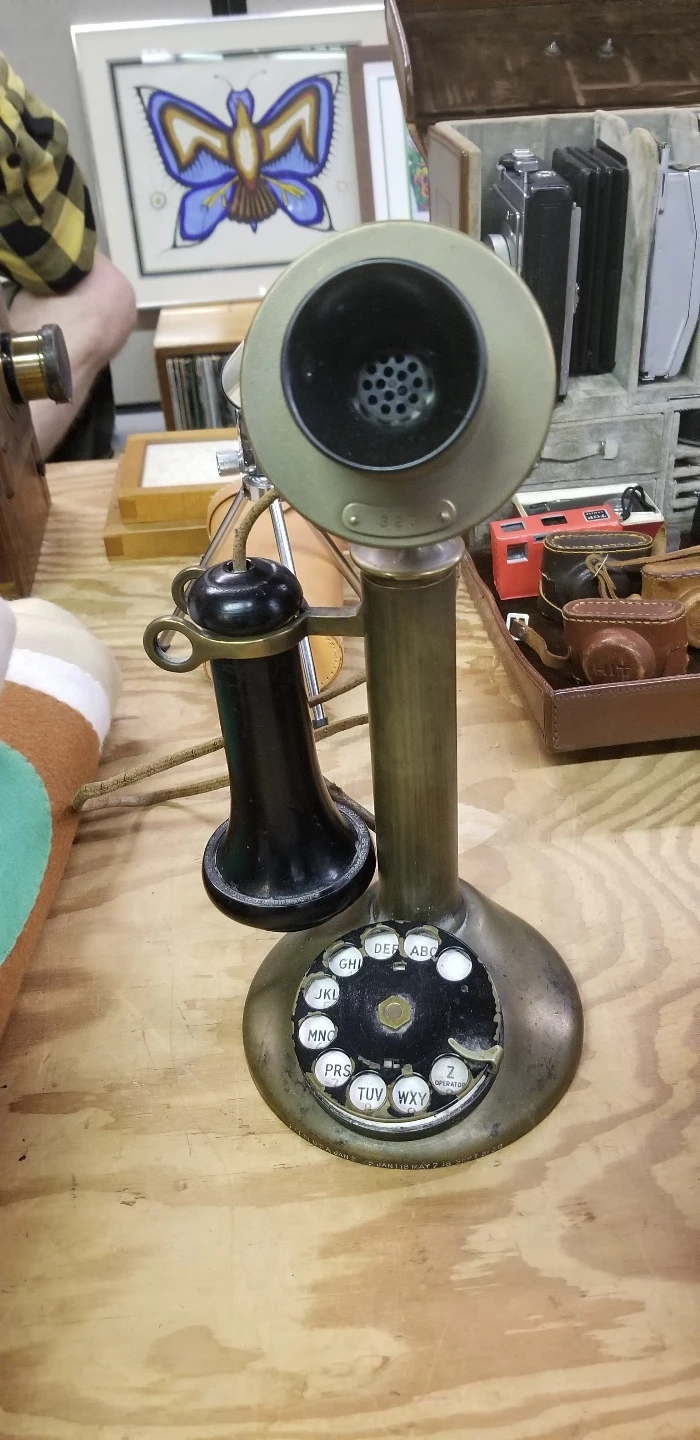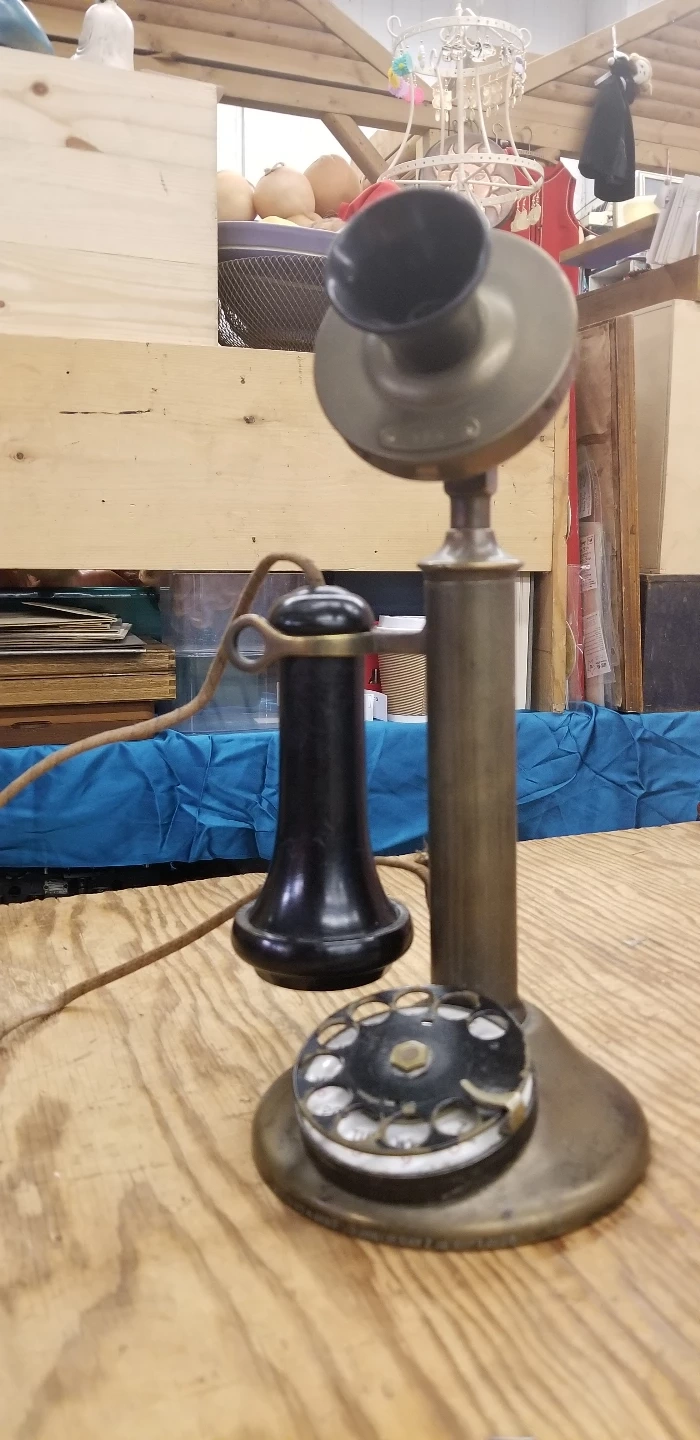 1900s - 1920s Candle Stick telephone , in very nice condition . Over 100 years old , missing bottom plate , no cracks or chips in the Bakelite . great display piece . cash payment please , thanks for looking .
