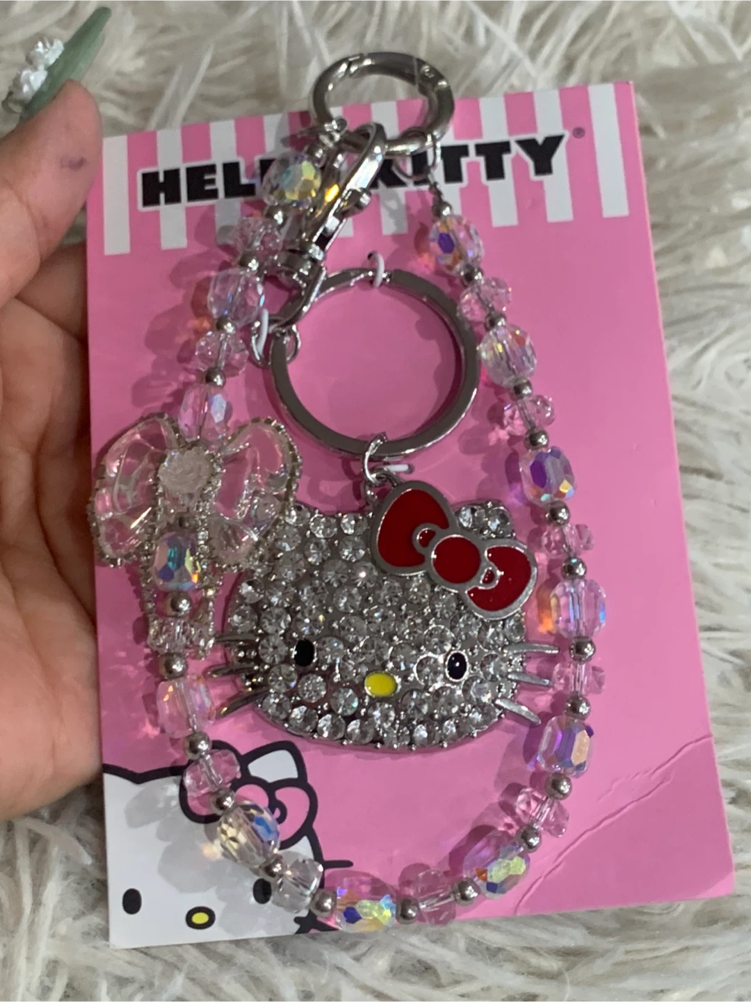 Super cute Hello Kitty keychain with beaded details! It's in great condition and ready to add some sparkle to your keys or bag