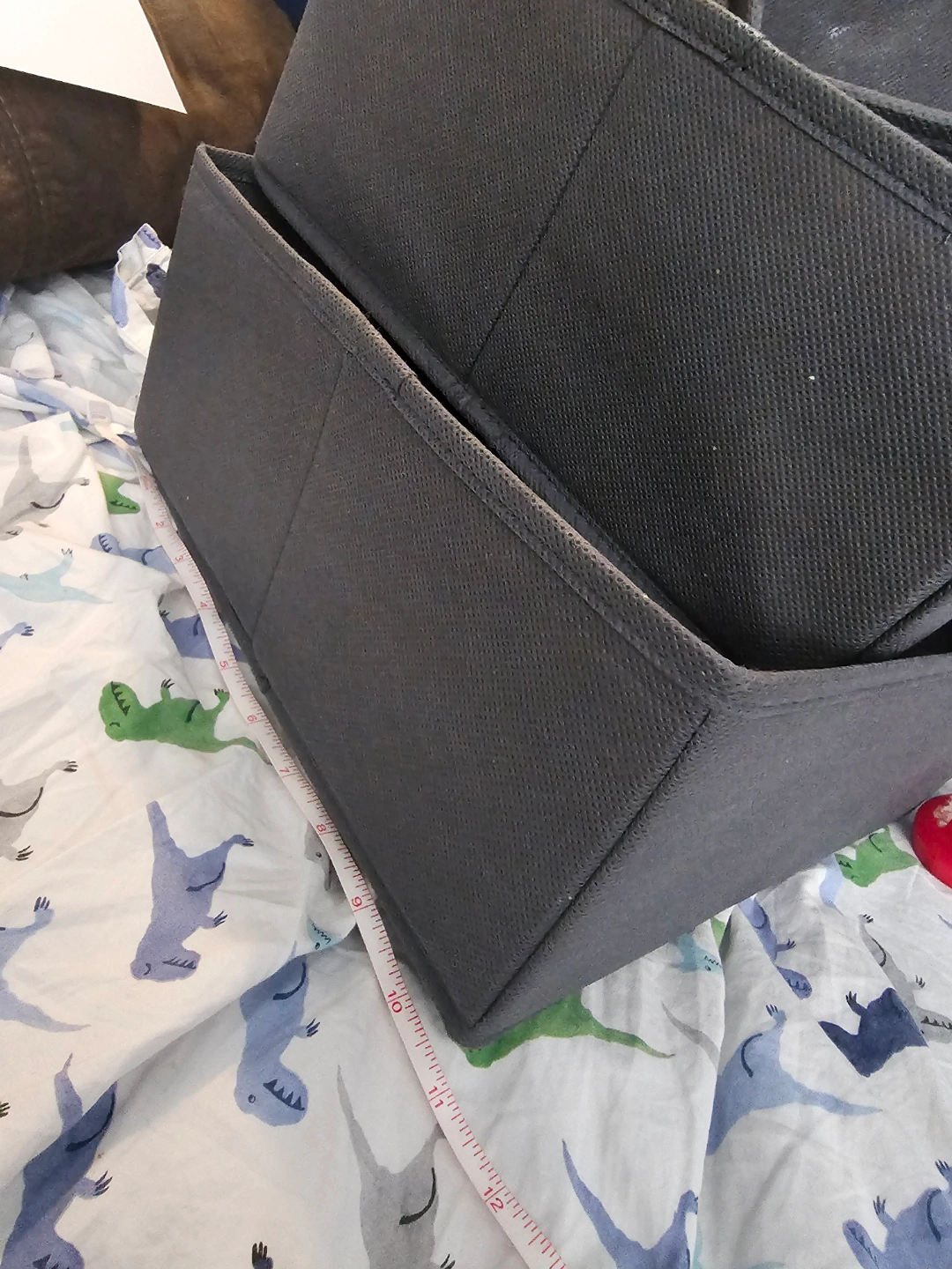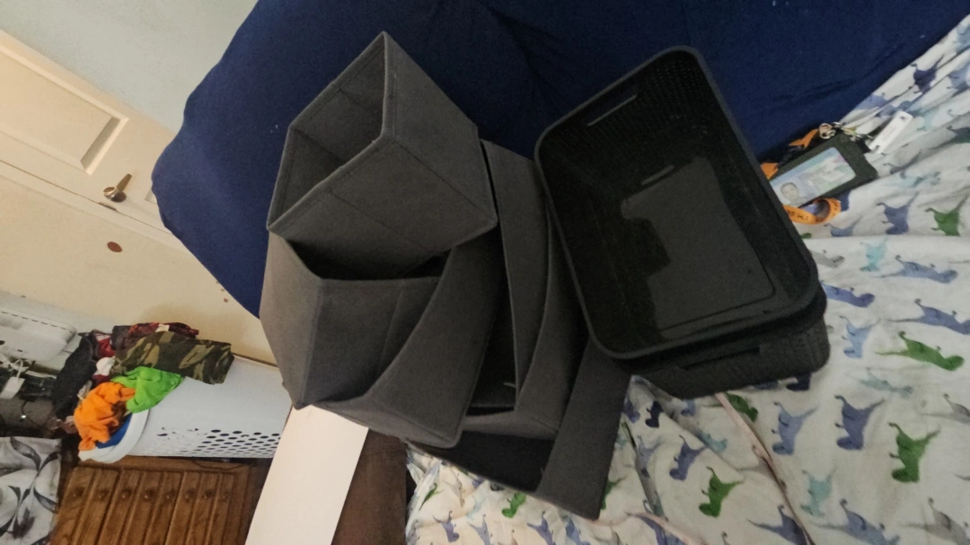 Set of Grey Fabric Storage Bins and Black Storage Container