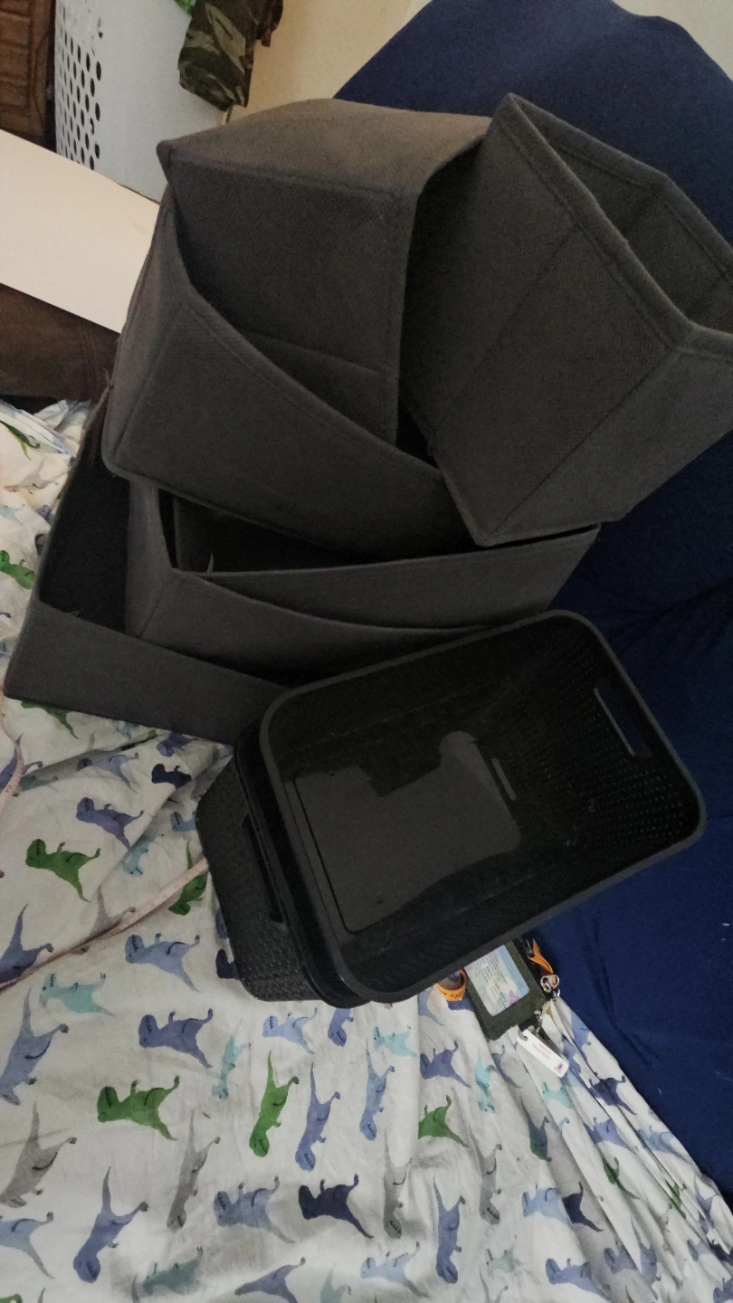 Set of Grey Fabric Storage Bins and Black Storage Container