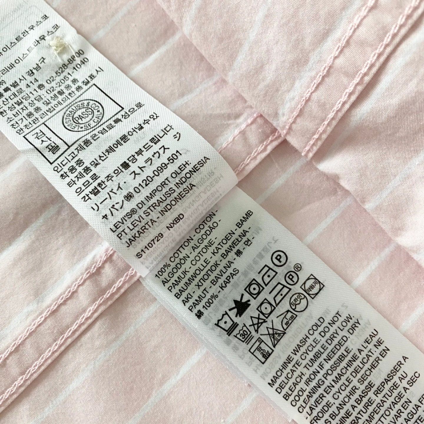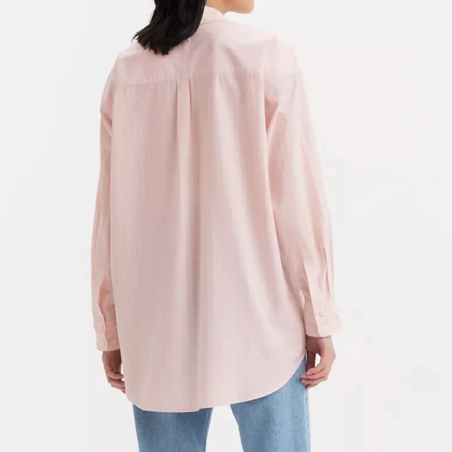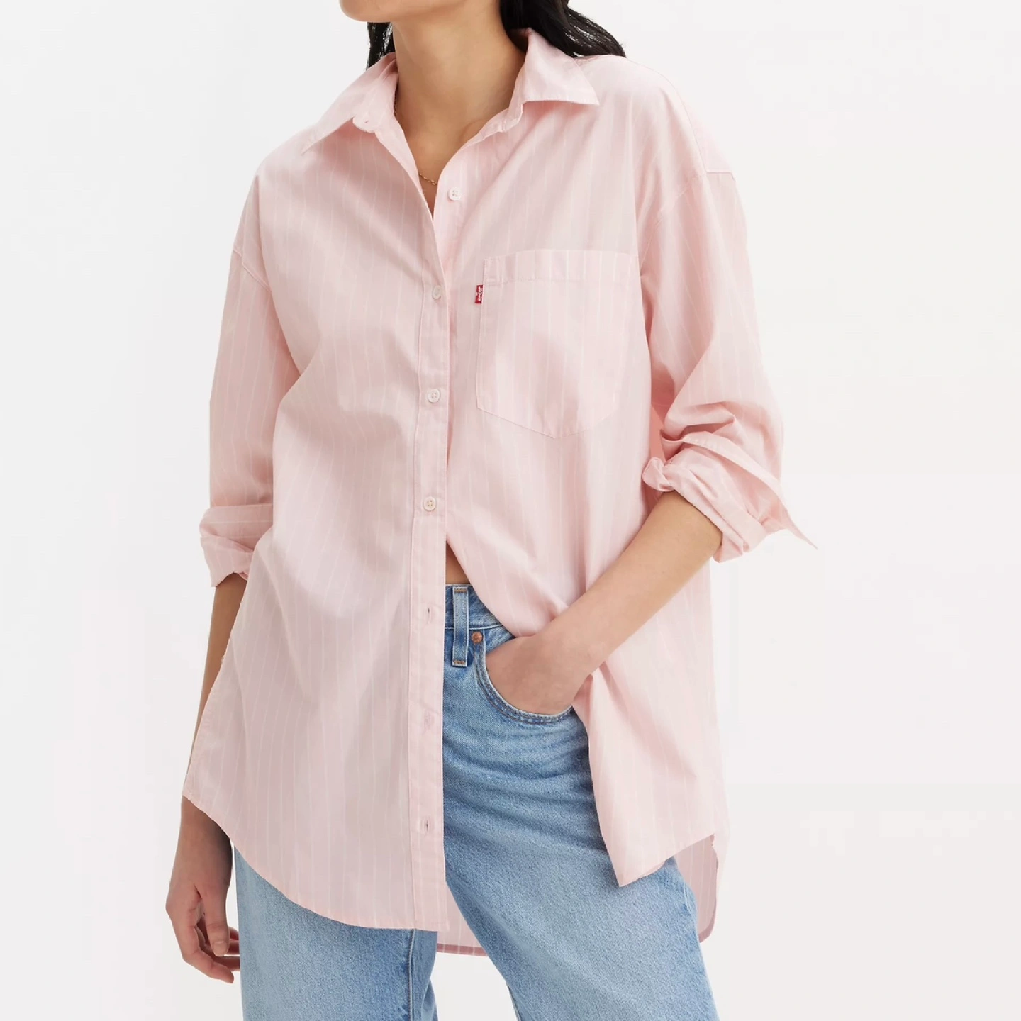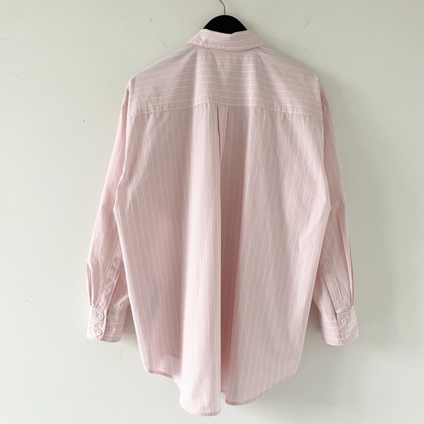 615Pick up only in Leslieville (Queen and Pape) Check out other listings! Levi's menswear inspired button-up shirt. Features an oversized fit, roomy sleeves and a patch pocket. Made of lightweight 100% cotton in light pink and white stripes. It's soft, crisp and drapes nicely. There's no staining or damage, It's clean and in excellent condition. Size S (oversized) Approximate measurements laid flat Shoulder 21.5” Pit to pit 24” Shoulder to cuff 20.5” Center back length 30.75”