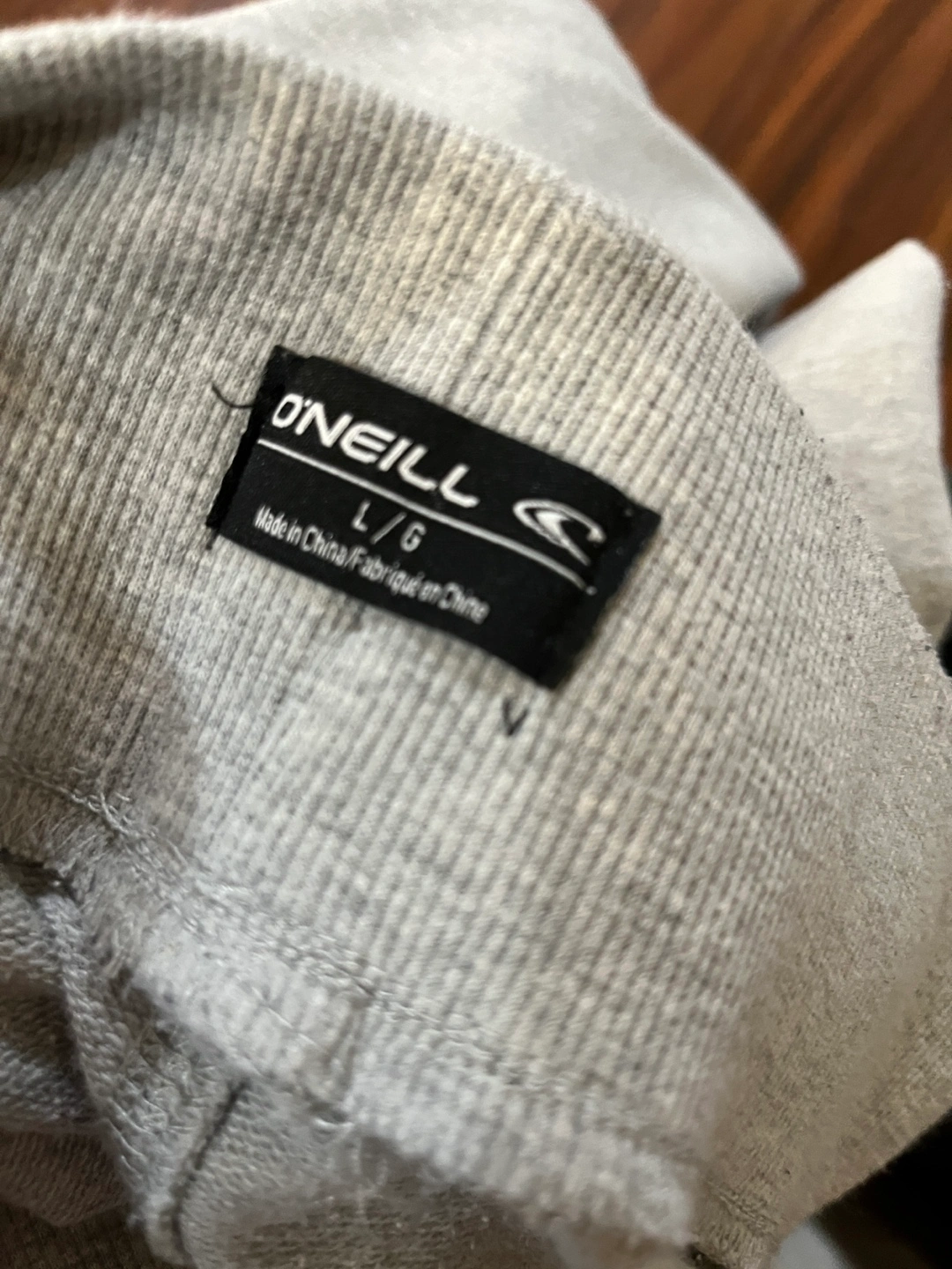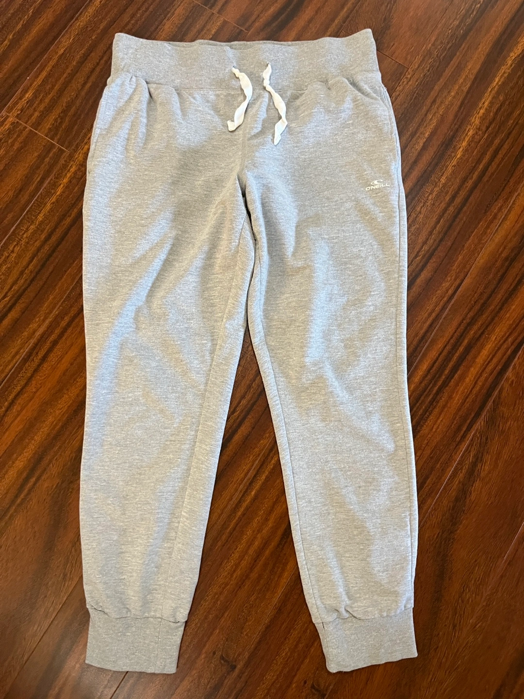 Excellent condition. Gently used. Soft, breathable fabric in light grey. Ribbed waistband and cuffs. Adjustable drawstring waist and side pockets. Classic O’Neill logo detail. Smoke free home. $15 OBO