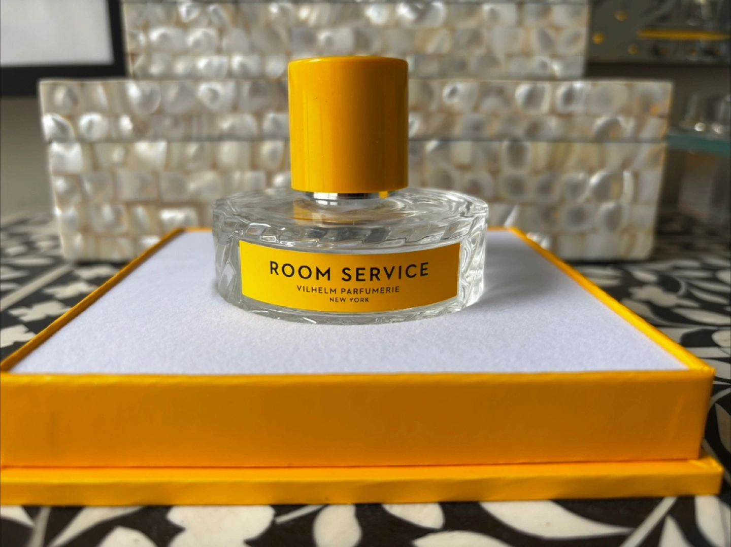 50 ML Eau de Parfum. Like new, only a few sprays, comes with box. Room Service by Vilhelm Parfumerie is a unisex Oriental Floral fragrance. The nose behind this fragrance is Jérôme Epinette. Top notes are Blackberry and Mandarin Orange; middle notes are Violet, Orchid and Bamboo; base notes are Musk, Black Amber and Sandalwood.