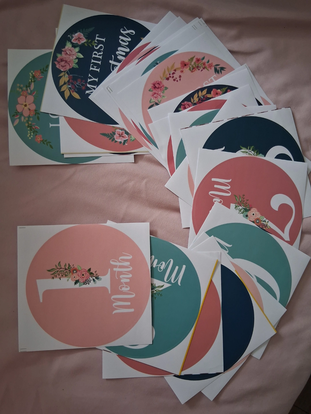 784Set of 24 milestone stickers. Features monthly stickers and holiday-themed stickers. Large, 4 inch diameter stickers. Easy to use for photos. Great for mom taking pictures for your little one at home. Cash only ,pick up only, no delivery.