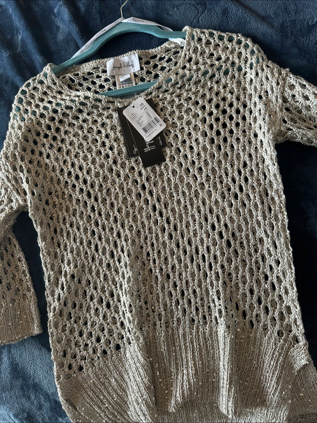 Gorgeous champagne-coloured knit sweater. Features an open knit design and subtle embellishments. Size extra small. New with tags. Retails $129+