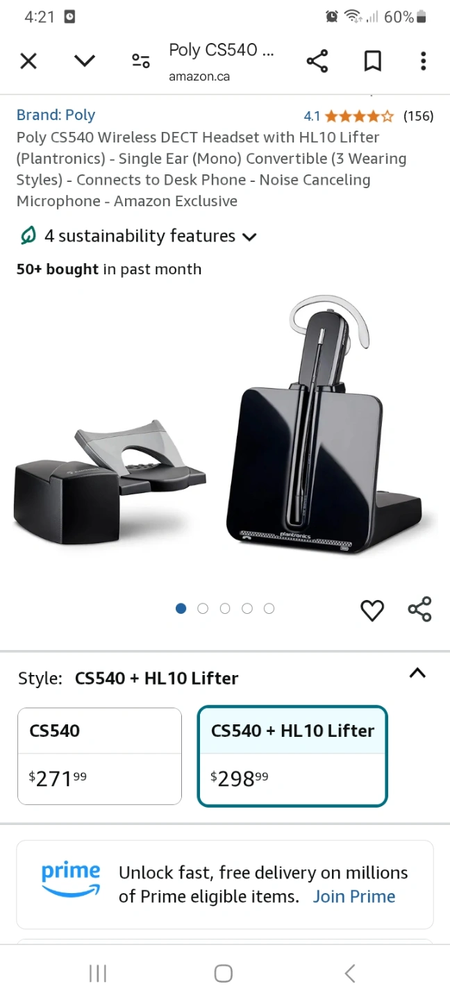 43Brand new, never used Poly CS540 Wireless Headset. Includes HL10 lifter. Single ear (mono), noise canceling microphone. Connects to desk phone. Comes in original packaging.