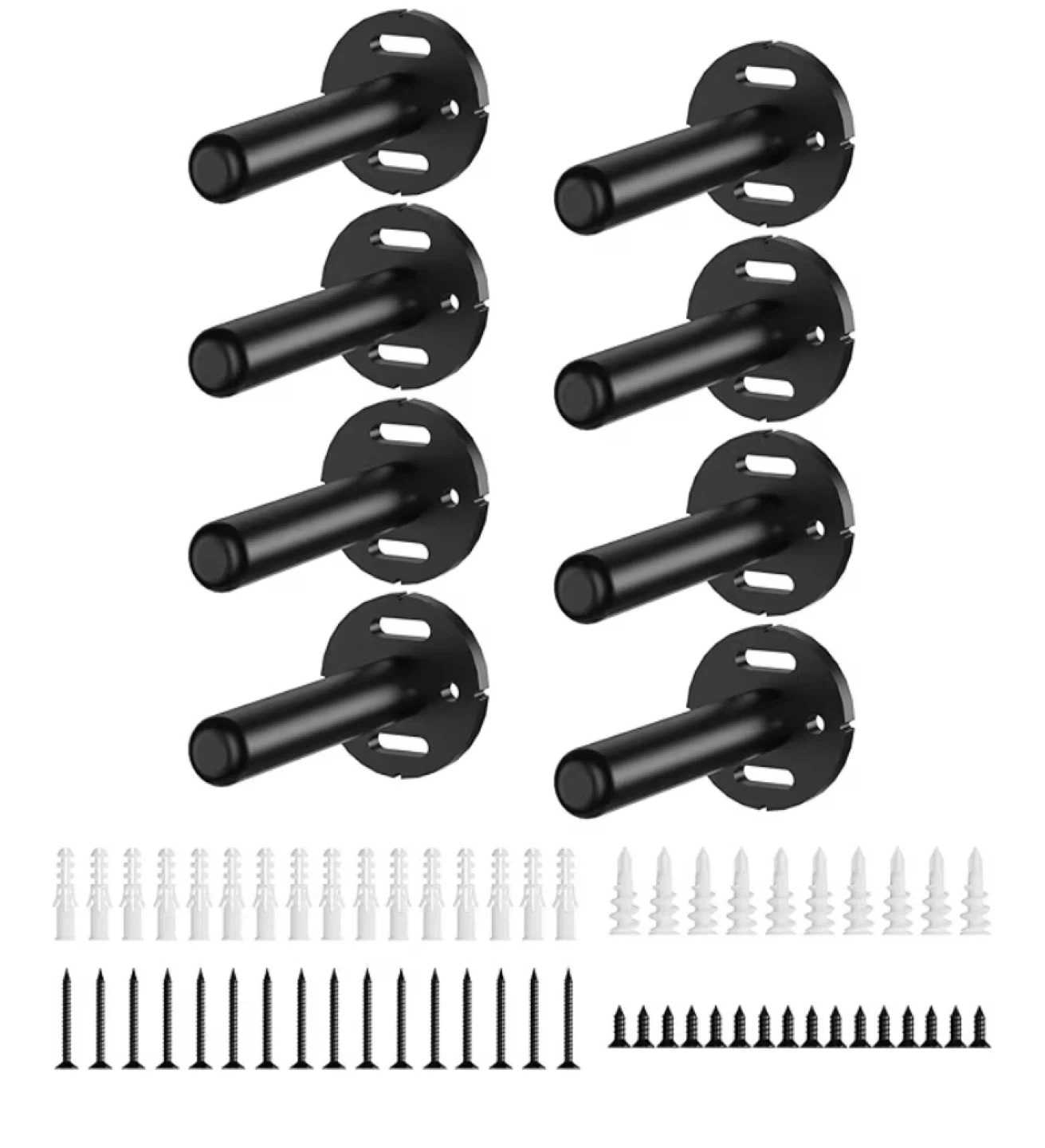 Set of 8 Black Floating Shelf Brackets with Screws and Anchors