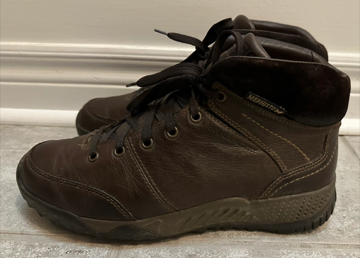 Fausto boots by Mephisto will be you best winter shoe, providing you comfort and warm support. Hydroprotect technology helps to prevent against rain and moisture. Premium leather Mephisto hiking boots. Lace-up closure. Currently has wool shearling inserts and cedar shoe tree . Comes with a shoe bag . Made in France. Excellent condition. Price is negotiable within reason. $120 OBO .