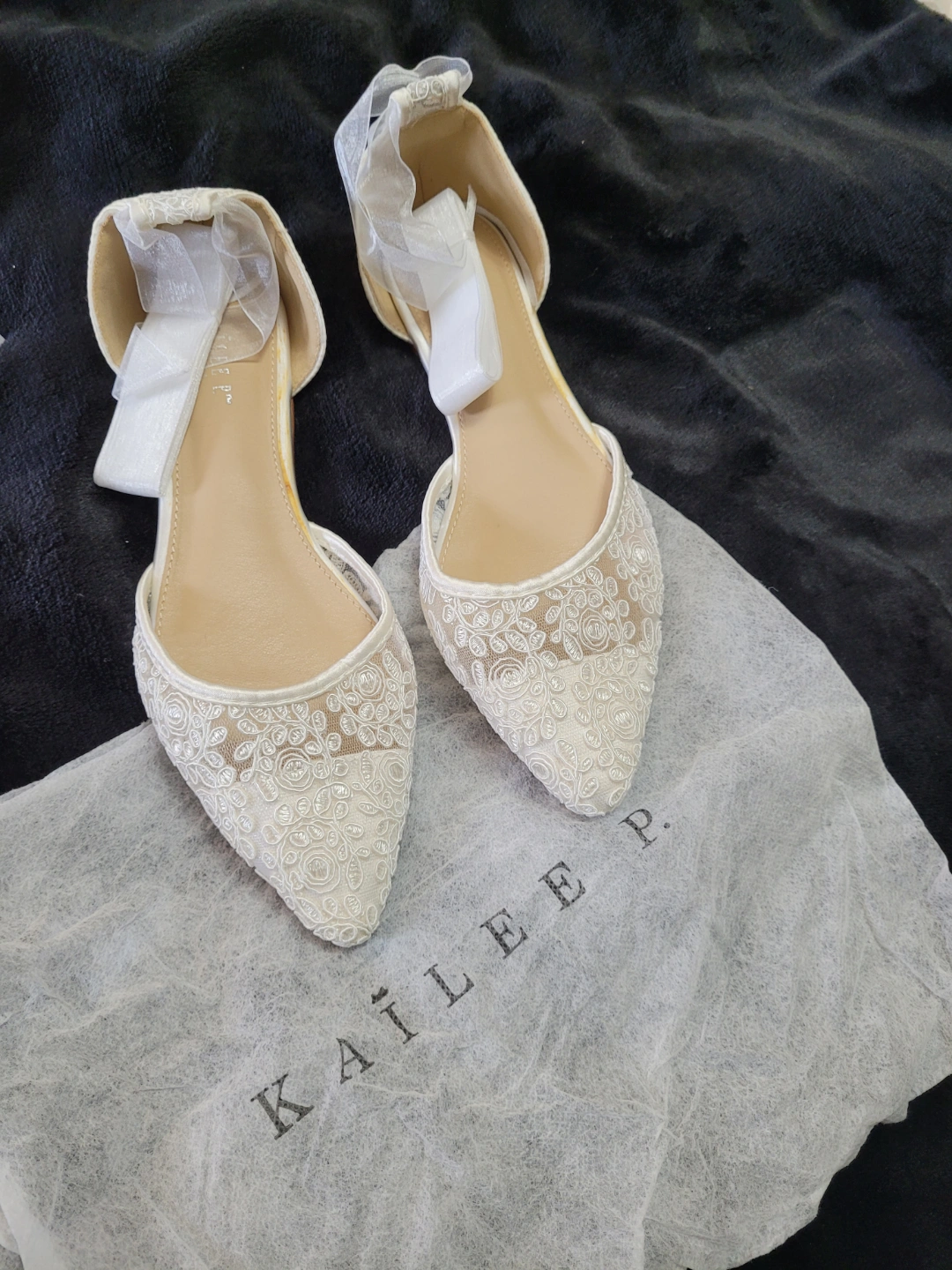 *NEW* KAILEE P. White Floral Lace Bridal Flats, Size 7.5