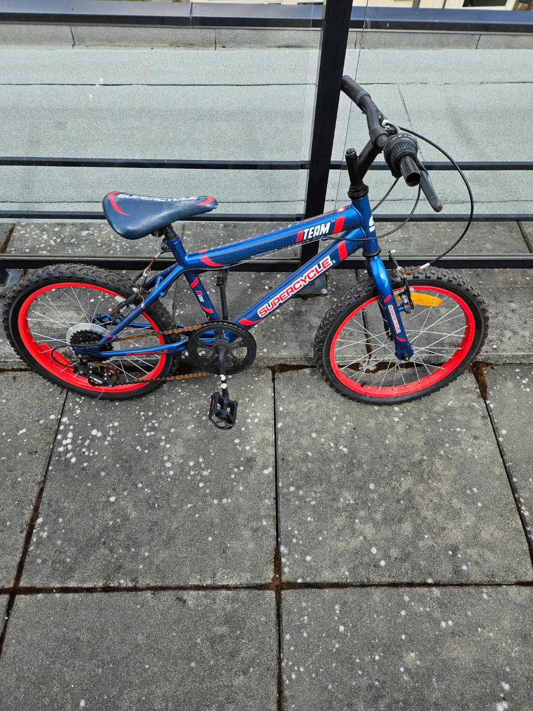 One kid's bike - blue. Some wear and rust on chains but still has lots of life in this bike. Great for active kids.