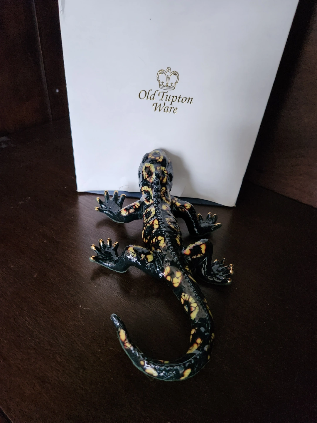 Collectible lizard figurine. Black and yellow floral design. Detailed features. Comes with original box. Original price $150