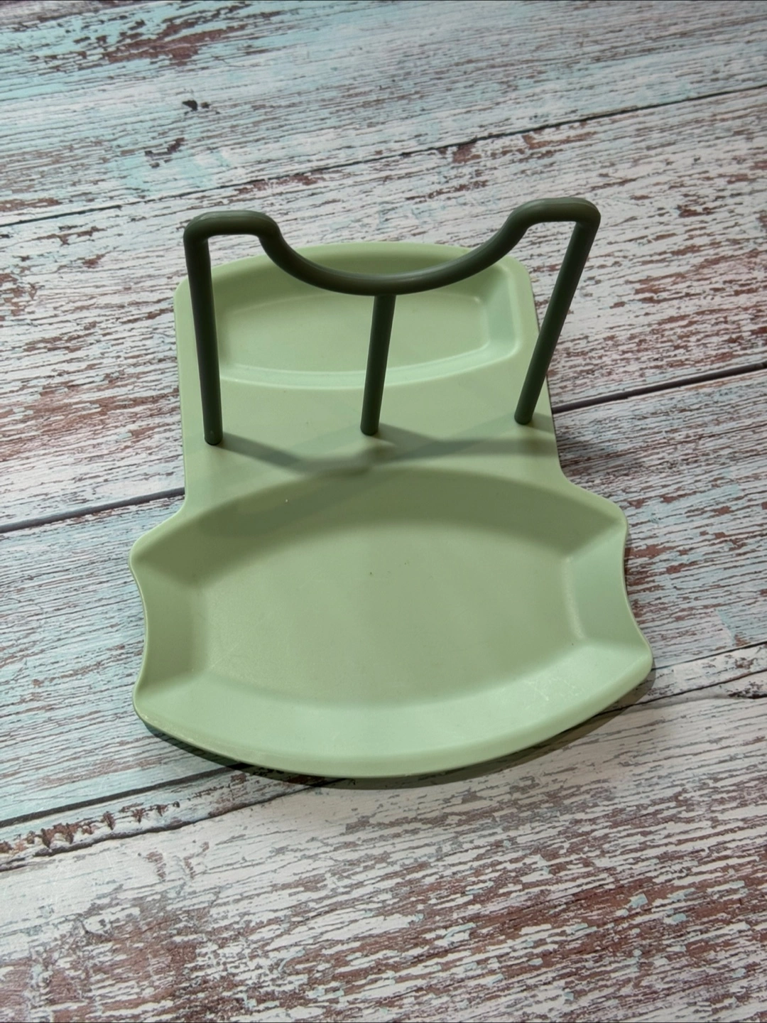 94Pale green plastic lid and ladle rest. Features a stand and a tray. Useful when cooking. Cash and pick up only at Markham.