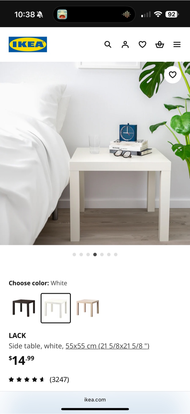 1 / 21 / 2Buy & SellIKEA LACK Side Table (1 white 1 black)IKEA LACK Side Table (1 white 1 black)$33CAD for each, and 5CAD for bothConditionLike newWHERE TO MEET209 Victoria StView MapSELLERJessieDowntown Toronto14813 reviews2 chats·2 favorites·44 viewsSEND CHAT TO SELLERHi Jessie! I’m interested in your listing.Hi Jessie! I’m interested in your listing.Get the Karrot app to chatSign In to chat