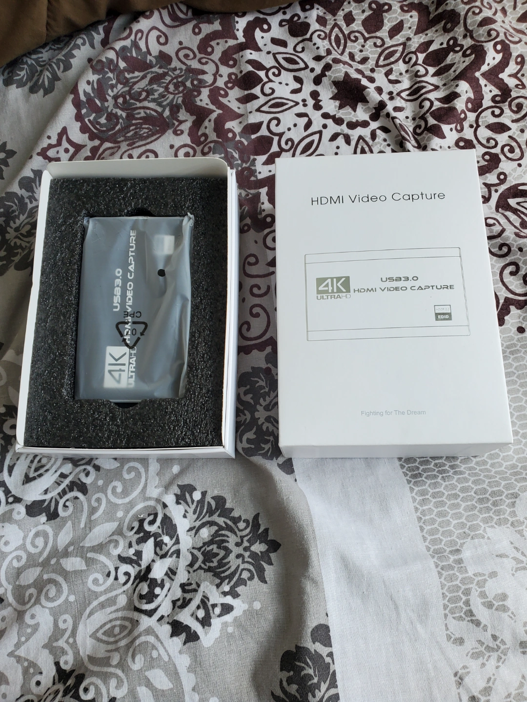New in box 4K Ultra HD HDMI video capture card. USB 3.0 interface. Includes packaging and instructions.