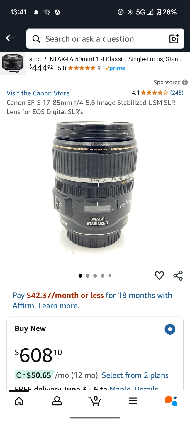 Canon EF-S 17-85mm f/4-5.6 IS USM lens for EOS Digital SLRs. Image Stabilized. Ultrasonic motor. Macro capabilities.