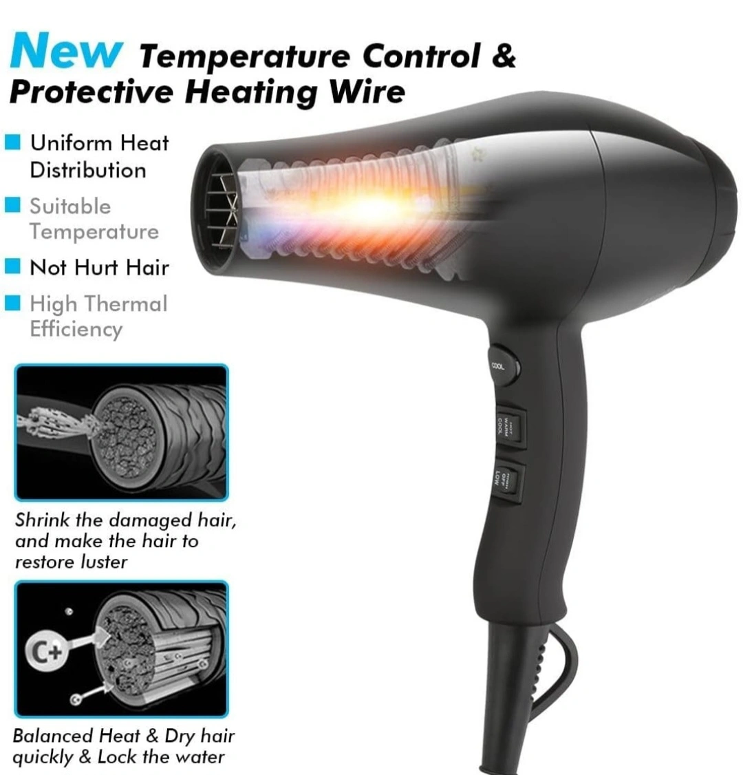 JINRI 1875W Professional Salon Grade Hair Dryer Negative Ion Hair Dryers with Diffuser and Concentrator Ionic Ceramic Blow Dryer 3 Heat 2 Speed Settings for Home or JINRI 1875W Professional Salon Grade Hair Dryer Negative Ion Hair Dryers with Diffuser and Concentrator Ionic Ceramic Blow Dryer 3 Heat 2 Speed Settings for Home or Travel