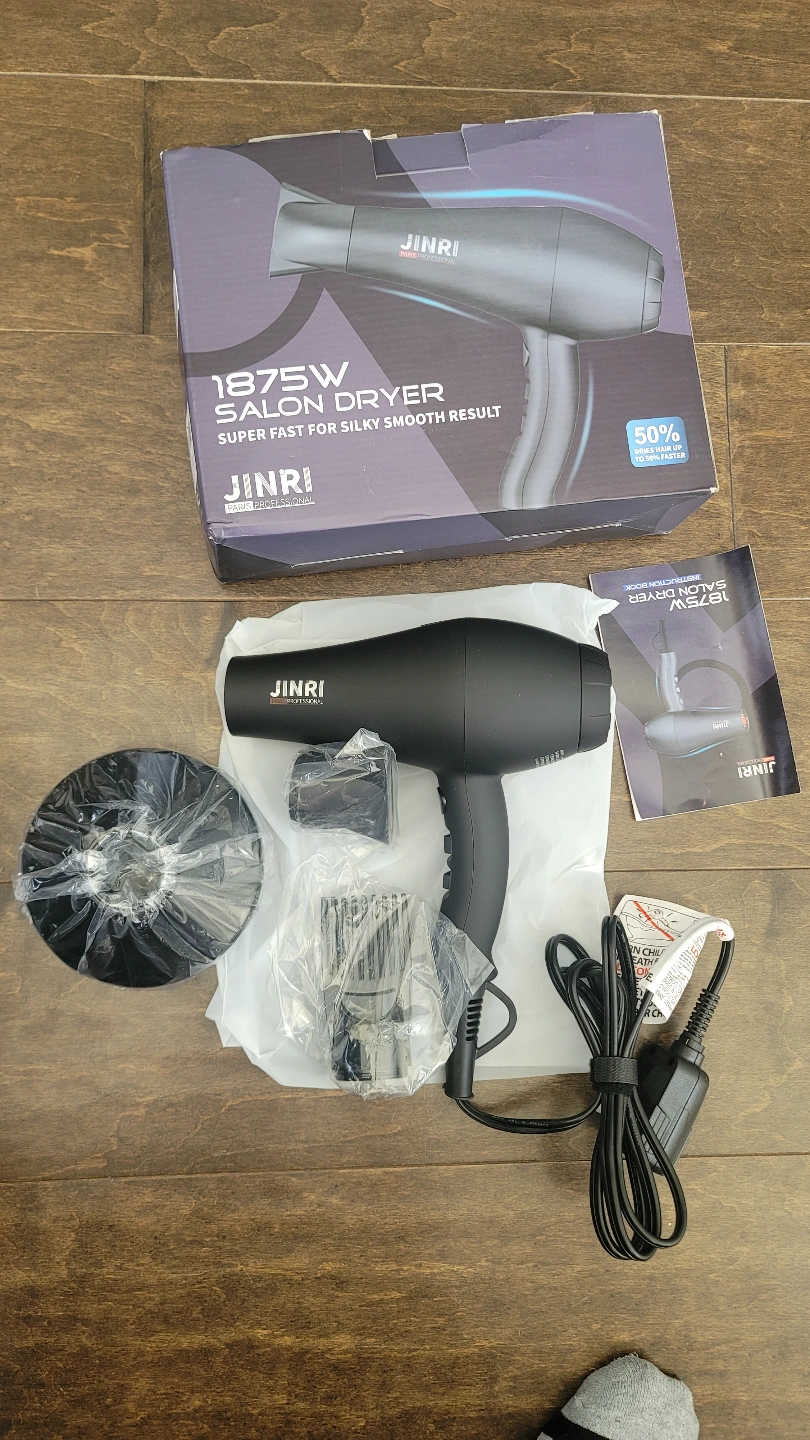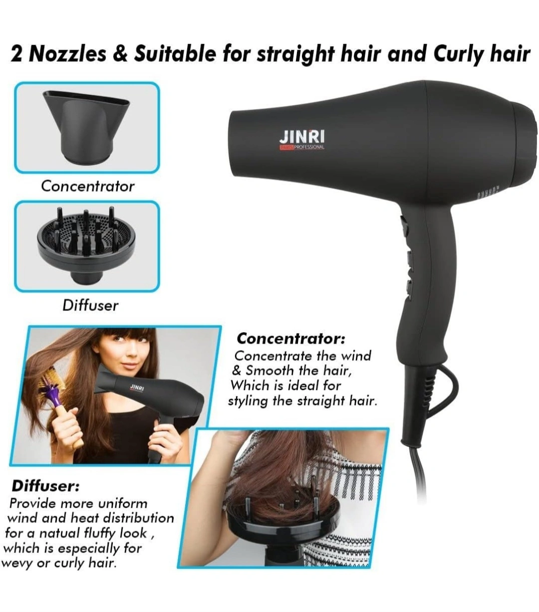 JINRI 1875W Professional Salon Grade Hair Dryer Negative Ion Hair Dryers with Diffuser and Concentrator Ionic Ceramic Blow Dryer 3 Heat 2 Speed Settings for Home or JINRI 1875W Professional Salon Grade Hair Dryer Negative Ion Hair Dryers with Diffuser and Concentrator Ionic Ceramic Blow Dryer 3 Heat 2 Speed Settings for Home or Travel