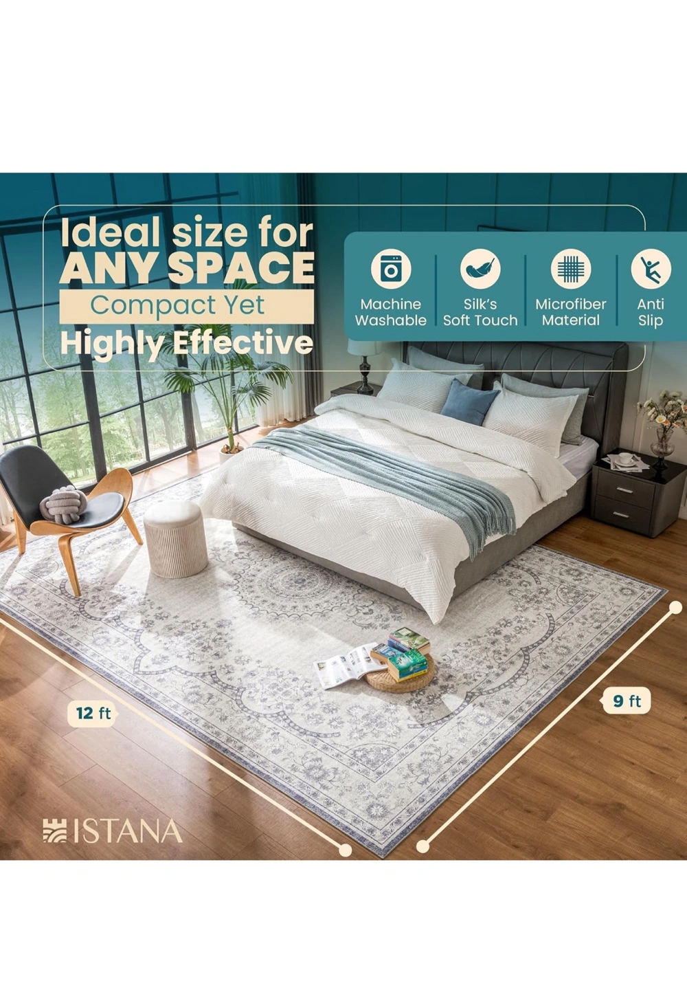 Boho Area Rug 9x12- Machine Washable, Anti-Slip, 7mm Pile