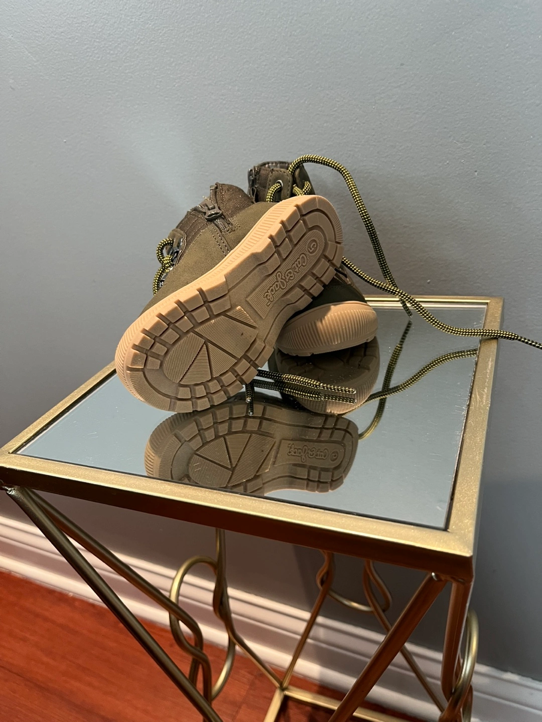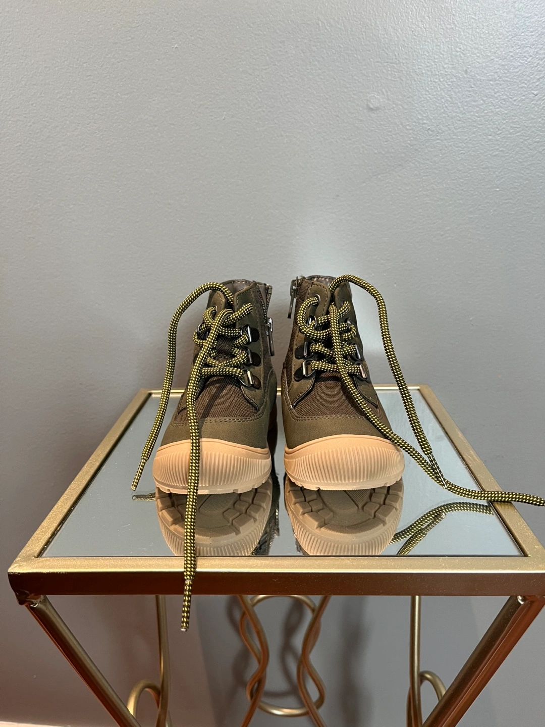 Cute olive green toddler hiking boots. Lace-up style with zipper. Great for fall and winter. Size 5.