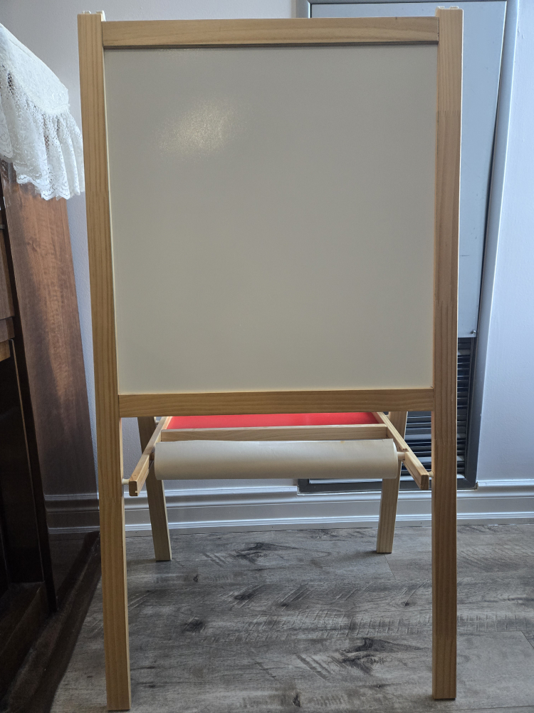 ikea kids easel in great condition. Never used the blackboard side. The white side is cleaned. Rolled paper is included. Markers and eraser are not included.