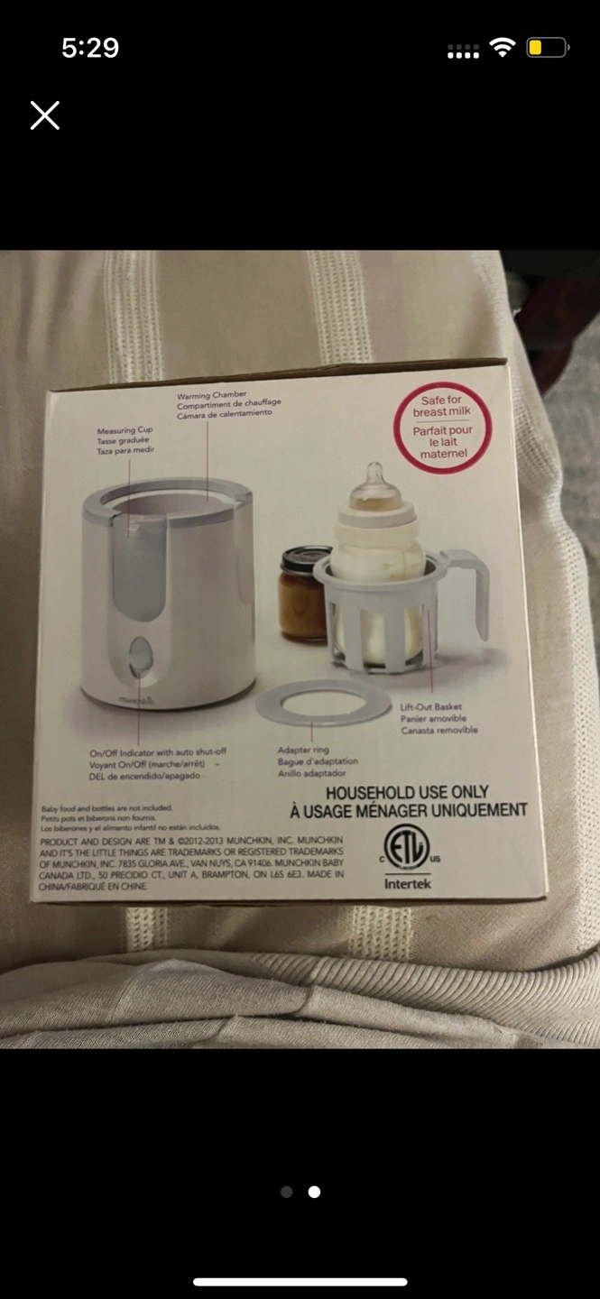 A bottle warmer. Has a lift-out basket and adapter ring. Suitable for household use. Bottle warmers are a wonderful way to provide your baby with a comforting feeding experience.