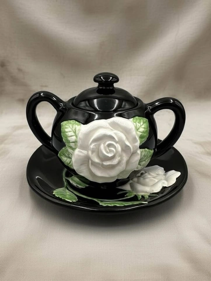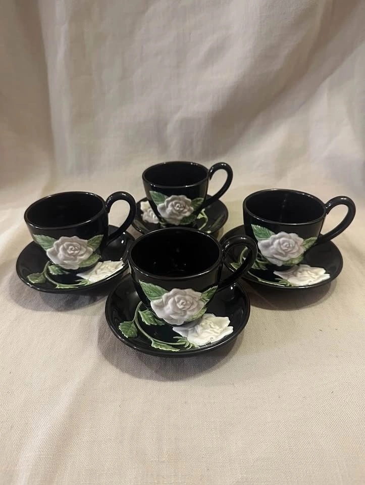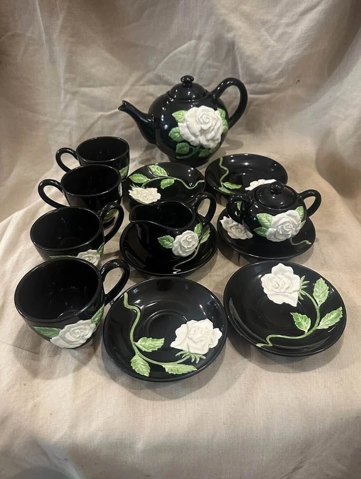 Vintage Fitz & Floyd tea set. 13-piece set includes: teapot, sugar with lid, creamer, 4 cups, and 6 saucers. Excellent condition, no chips or cracks. Never used, only displayed.