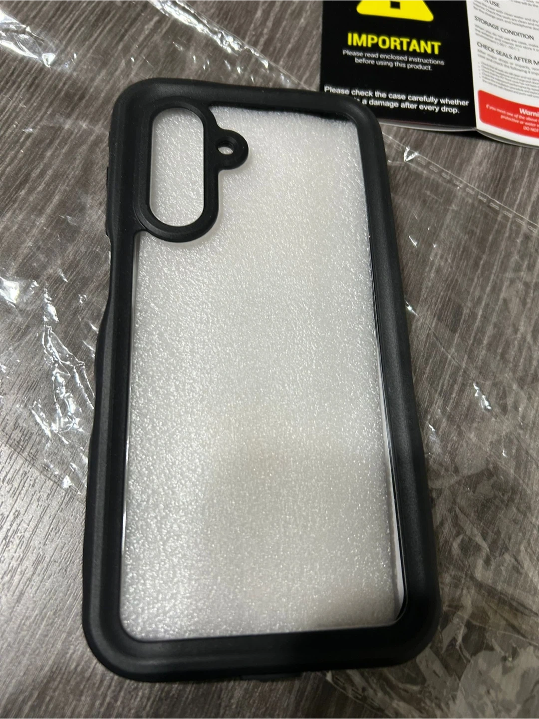 This is a new VRS Design phone case for the Samsung Galaxy A13 5G. It's a shockproof case with a clear back and black bumper. Includes instruction manual. Pick up at Islington /401 / bergamot avenue Etobicoke.