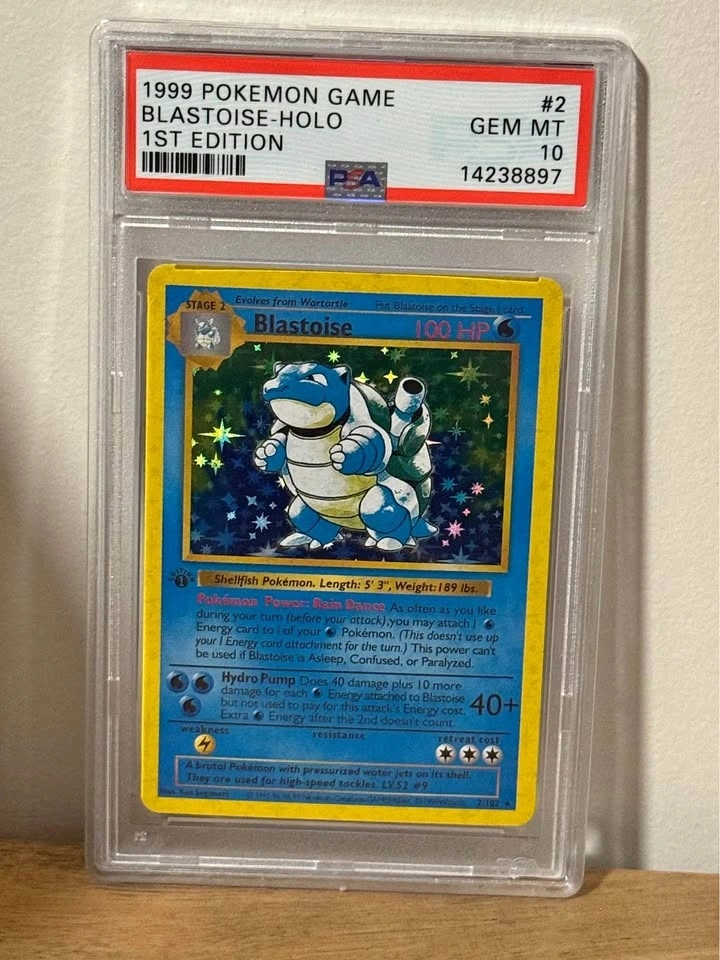 Decorative replica display piece featuring artwork inspired by the classic Pokémon Blastoise design. This is a novelty display replica only and is not an authentic graded card. It is intended strictly for decorative purposes. The card is sealed in a protective hard plastic display case, making it perfect for: Game room decor, Office shelves, Pokémon-themed setups, Gifts for fans, Nostalgic display pieces. Classic Blastoise Base Set style artwork. Decorative replica version. Non-playable / no collector resale value. Clean condition and ready to display. Great way to showcase the iconic Blastoise look without the high collector price. Pickup in Seton.